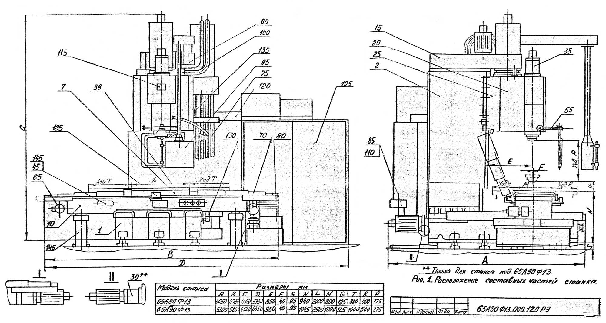 Настановне креслення бесконсольного фрезерного верстата 65А80
