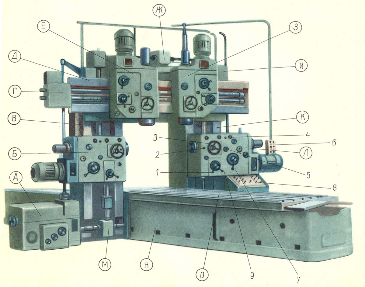 6652 Верстат продольно-фрезерный двостоєчний четырехшпиндельный. Назначение, область применения
