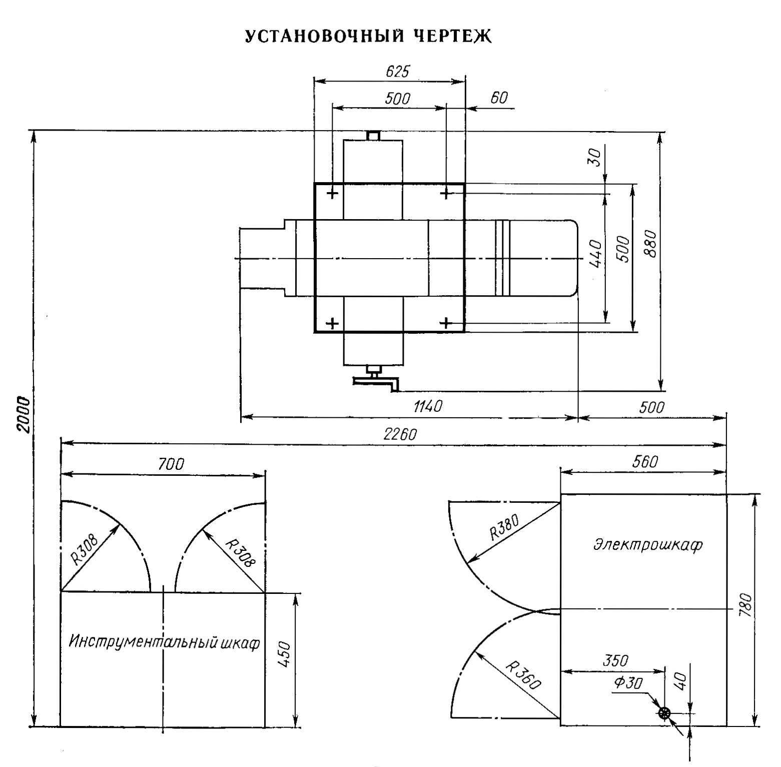 Настановне креслення універсального фрезерного верстата 6712. Дивитись у збільшеному масштабі