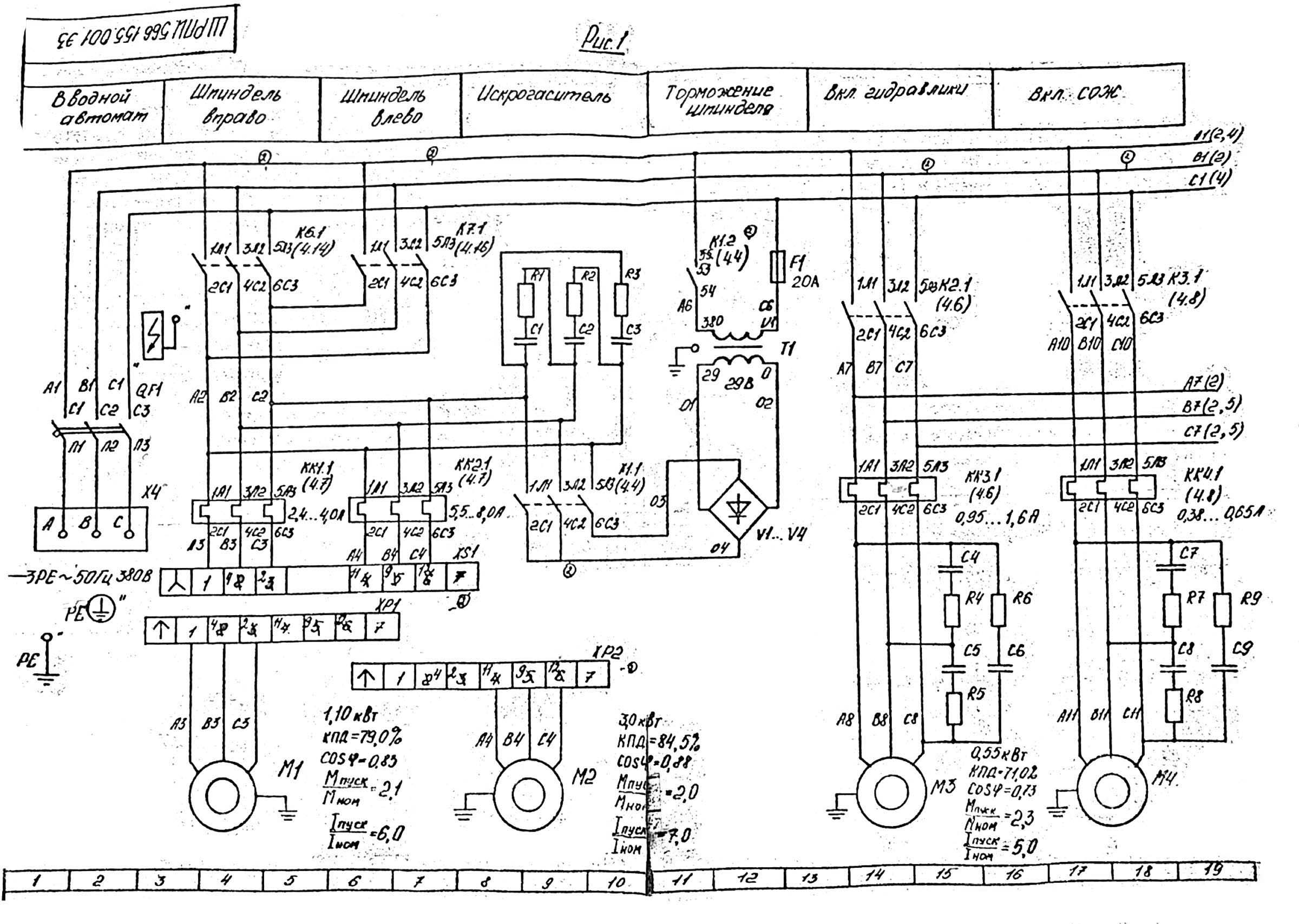 Схема електрична принципова фрезерного верстата 67к25