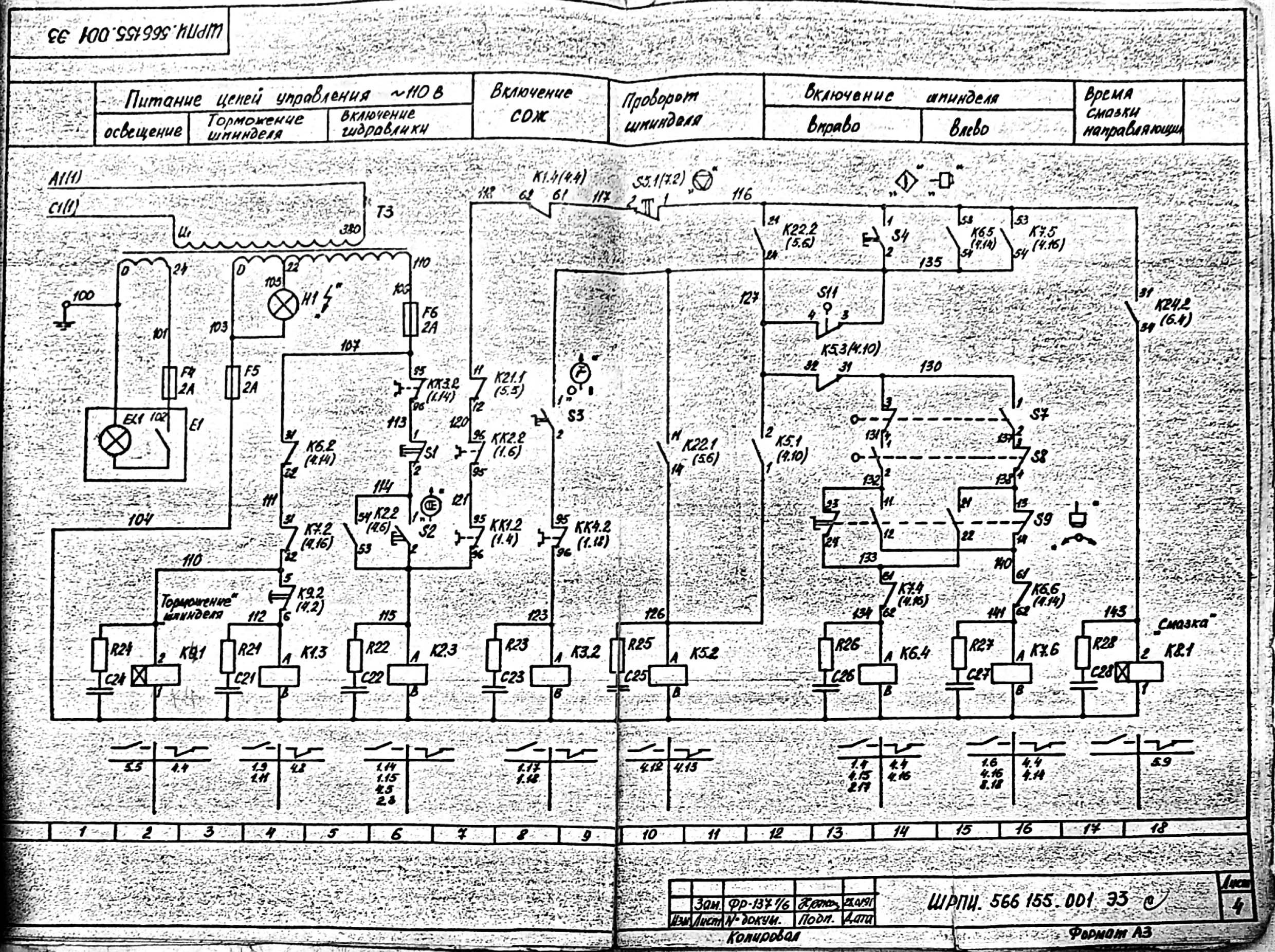 4. Схема електрична принципова фрезерного верстата 67к25. Дивитись у збільшеному масштабі