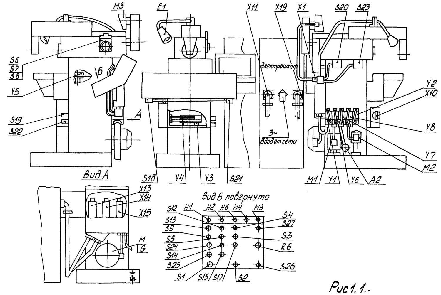 Схема розположення електроустаткування на фрезерном станке 67К25пр. Дивитись у збільшеному масштабі