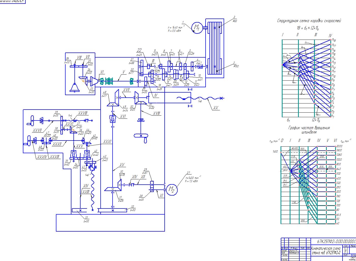 Схема кінематична фрезерного верстата 67К25ПФ2