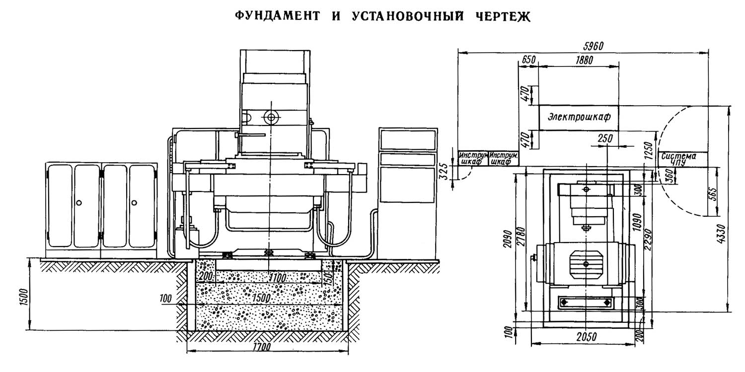 Настановне креслення горизонтально-фрезерного верстата 6904ВФ2. Дивитись у збільшеному масштабі