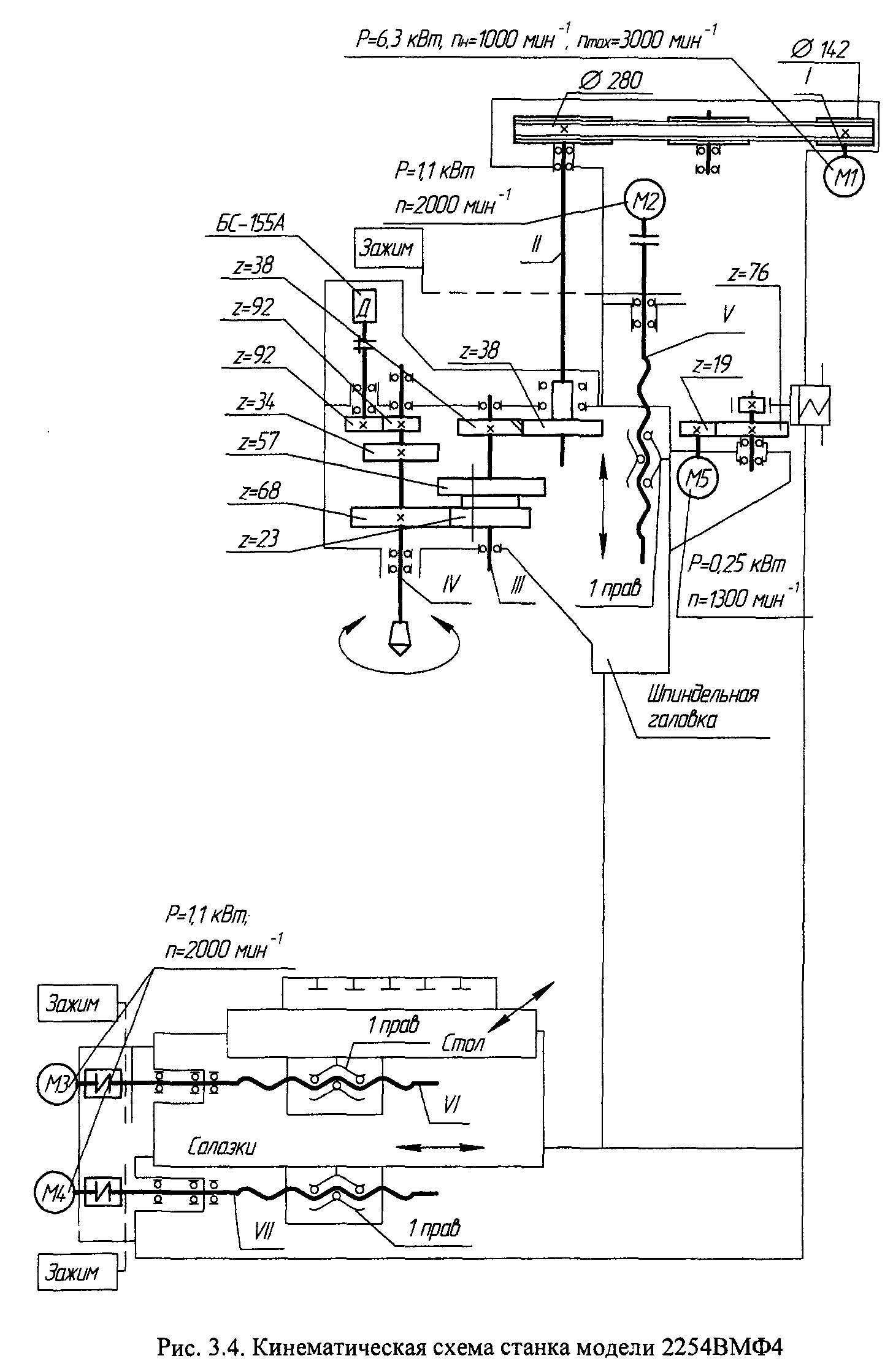 Кінематична схема 2254ВМФ4 вертикального сверлильно-фрезерно-расточного верстата