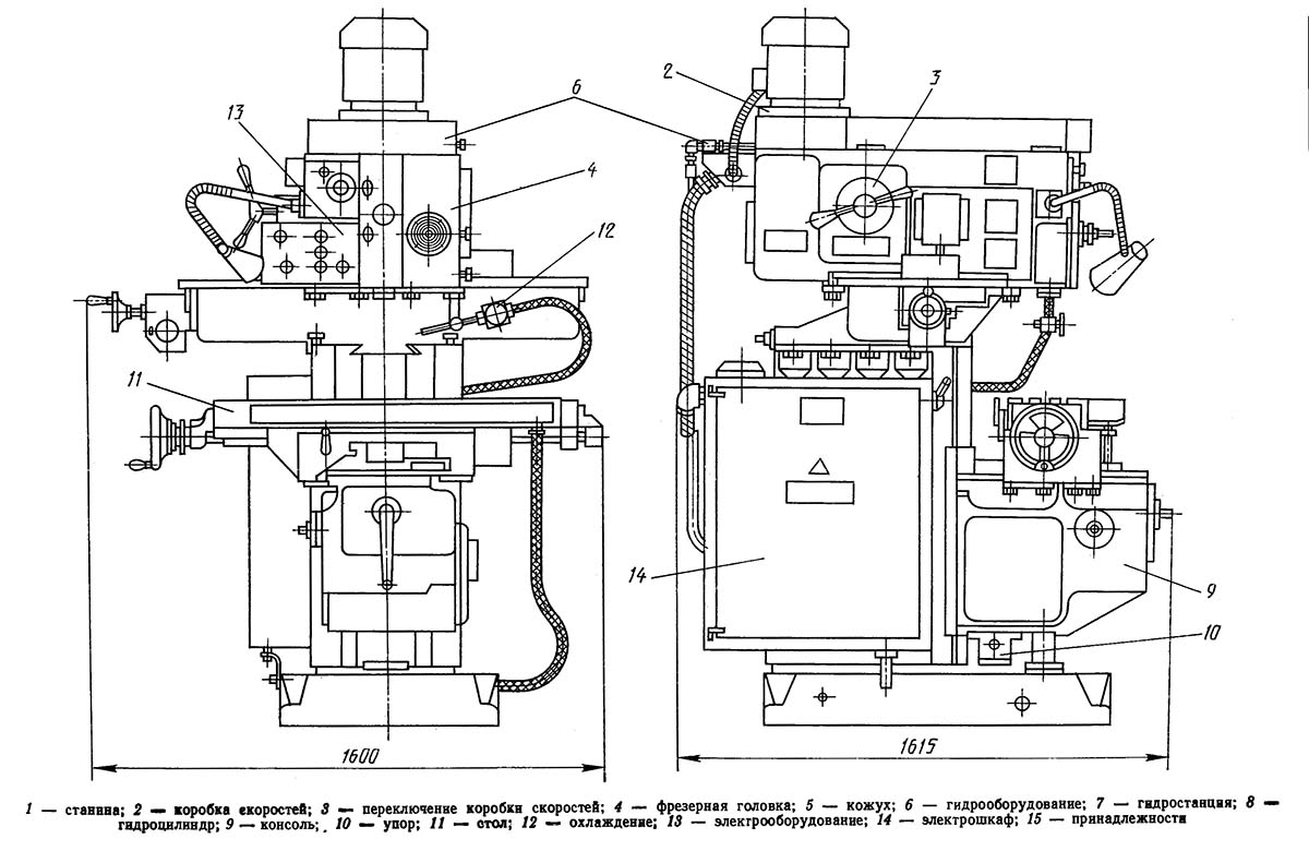 Розташування основних вузлів шпоночно-фрезерного верстата 692Д