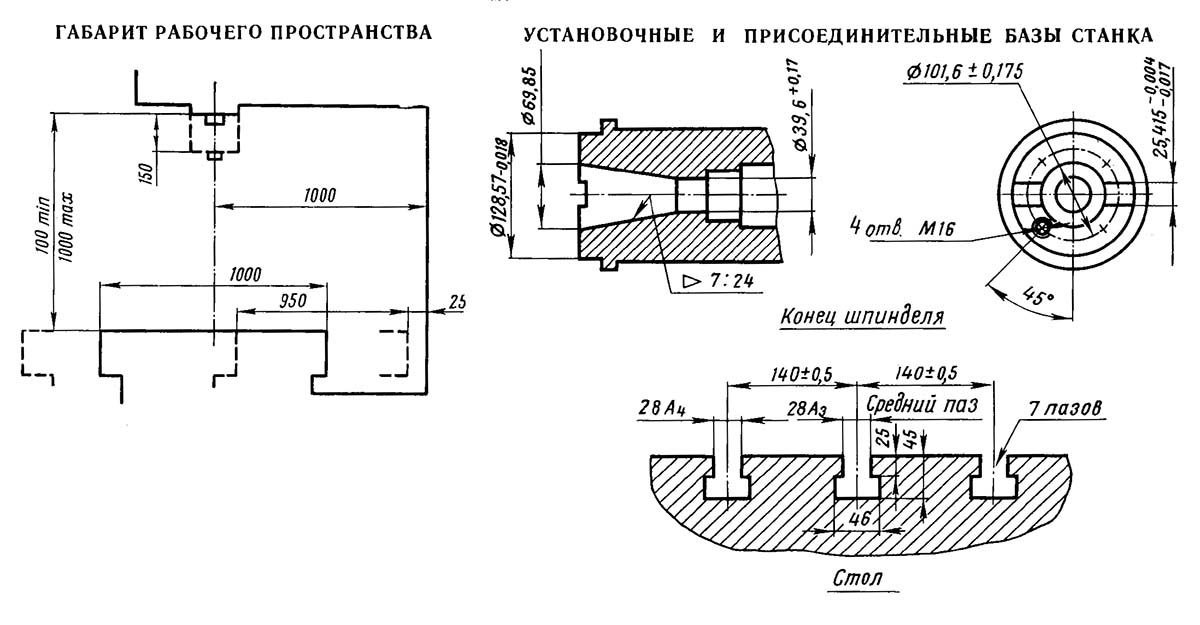 Расстояние от торца шпинделя до поверхности стола, мм 100..1000 125..1000