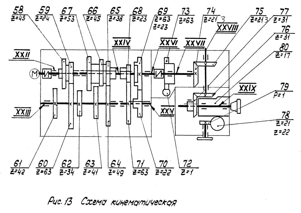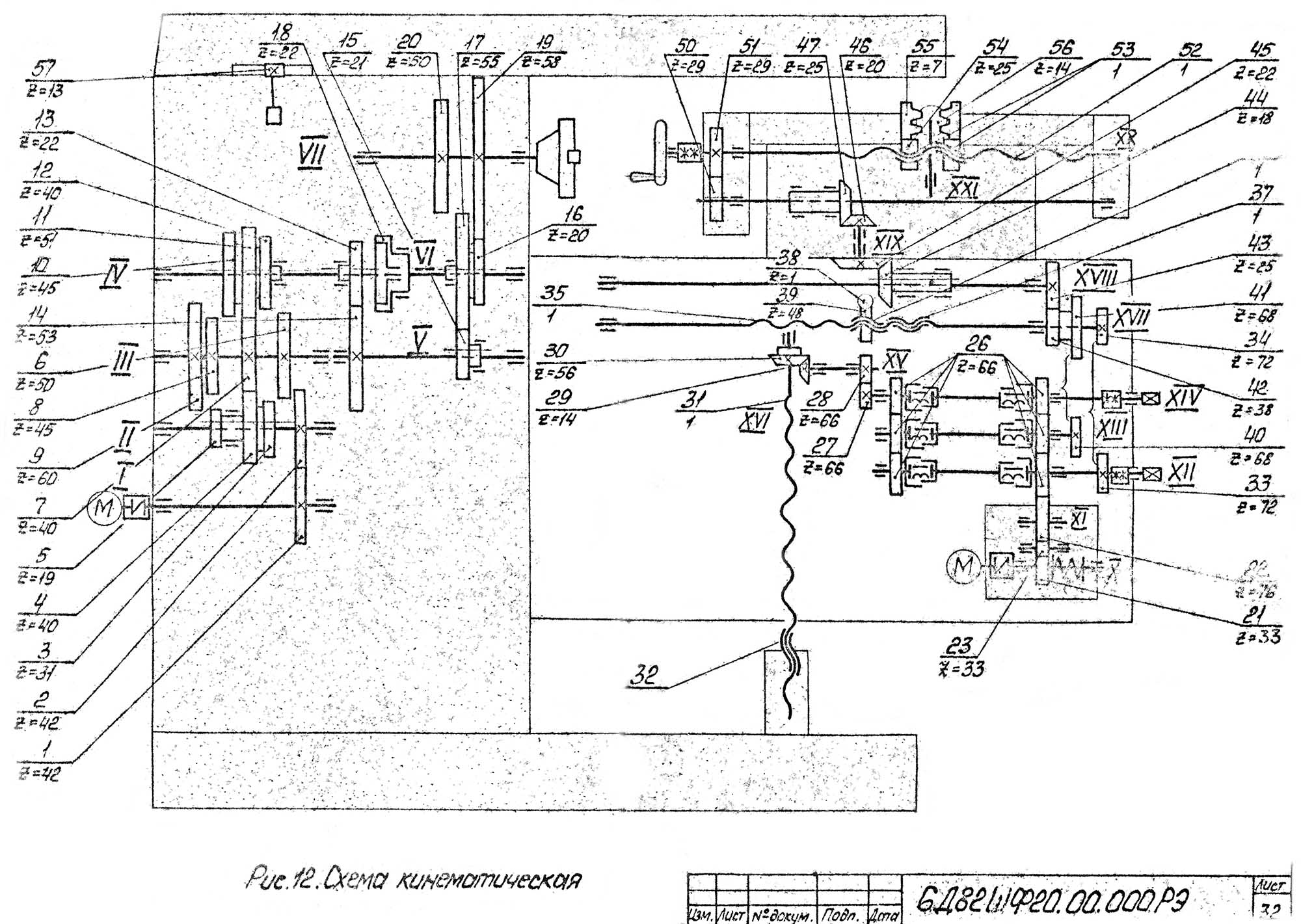 Кінематична схема консольно-фрезерного верстата 6Д82ШФ20. Скачать в увеличенном масштабе