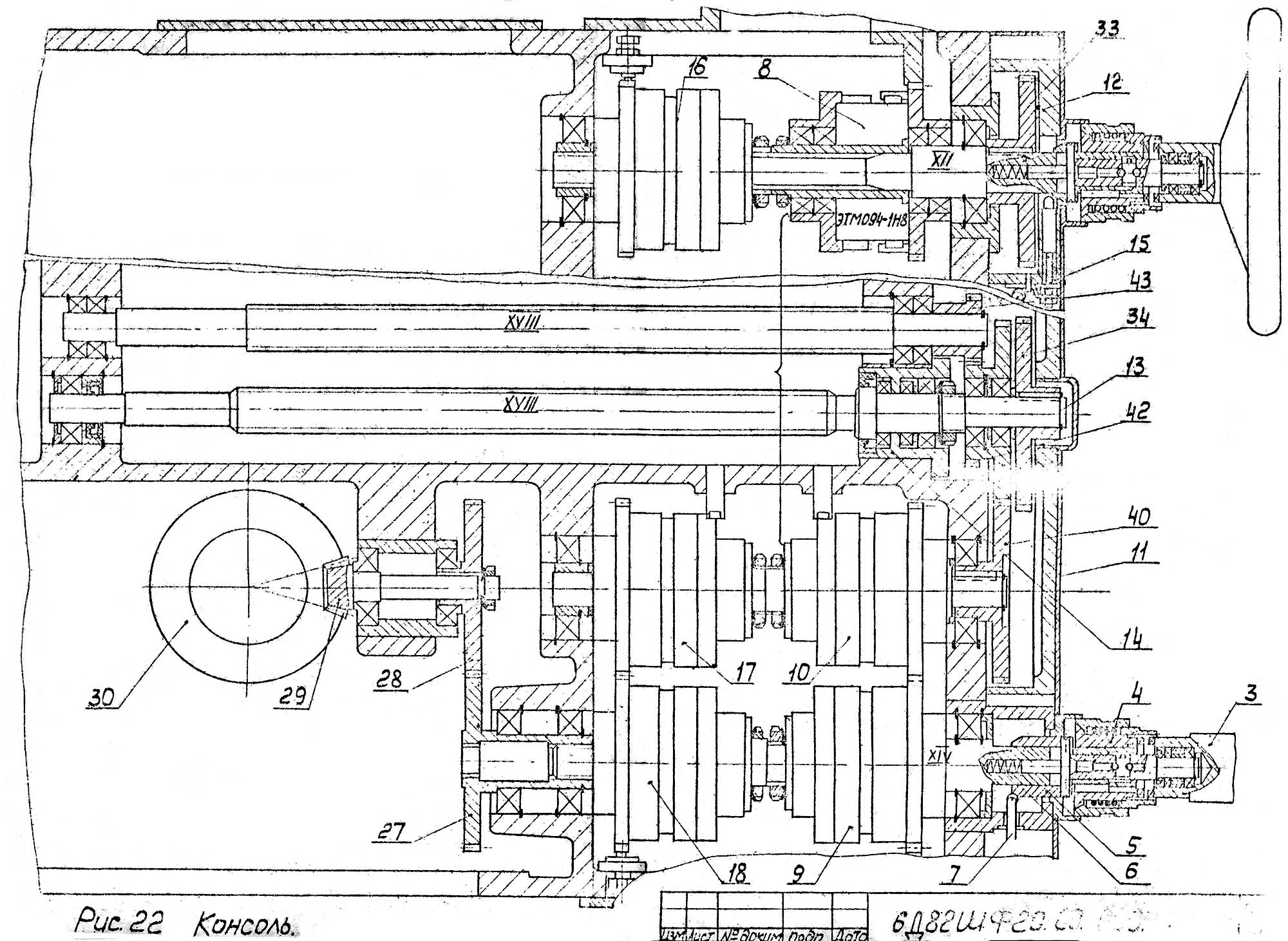 Привід головного руху консольно-фрезерного верстата 6Д82ШФ20. Скачать в увеличенном масштабе