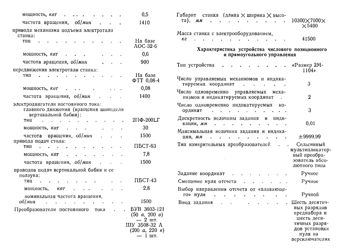 Технічні характеристики продольно-фрезерного верстата 6М610. Дивитись у збільшеному масштабі