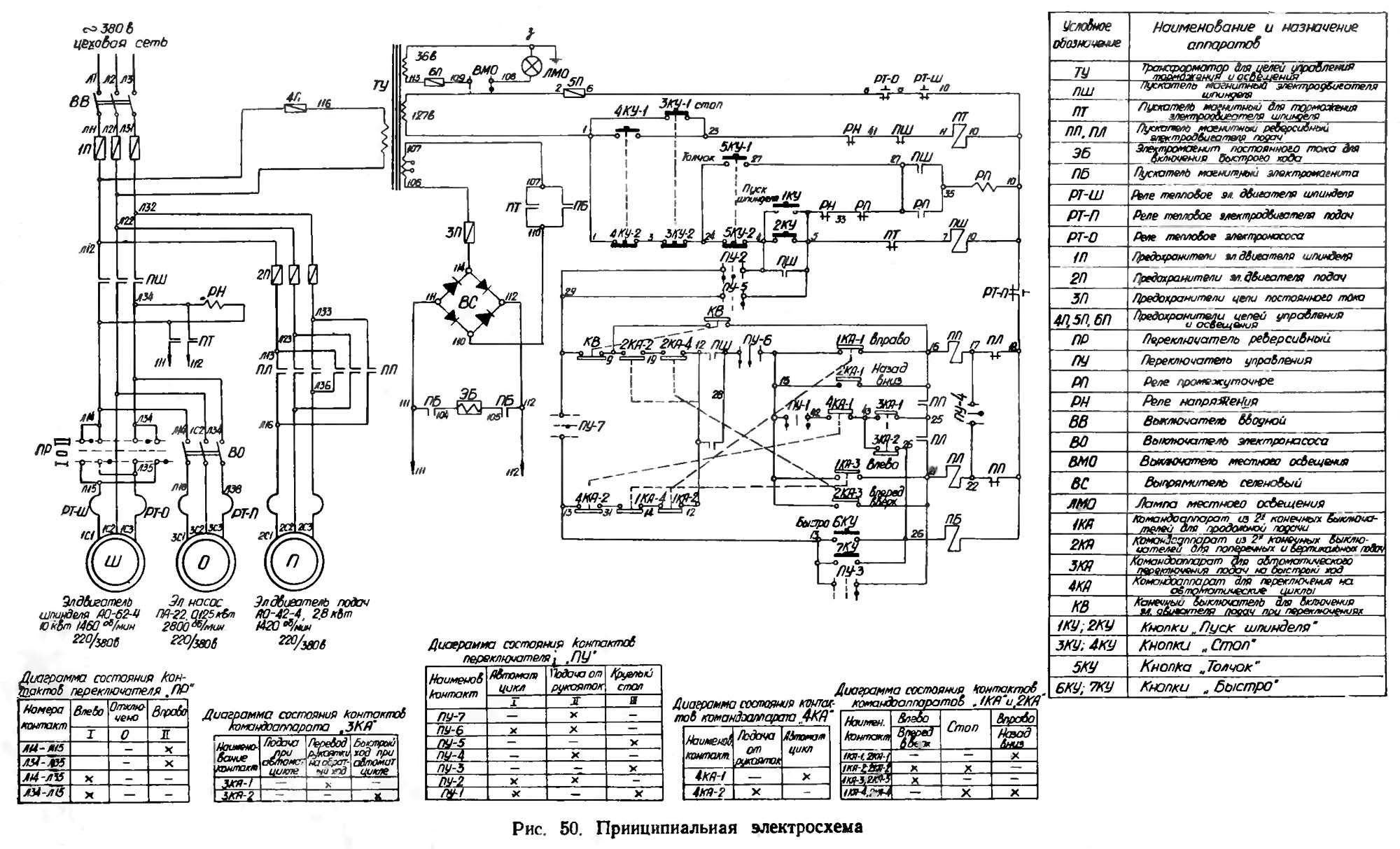 Електросхема имеет ряд блокировок, которые введены для обеспечения правильной експлуатации верстата і его електроустаткування: