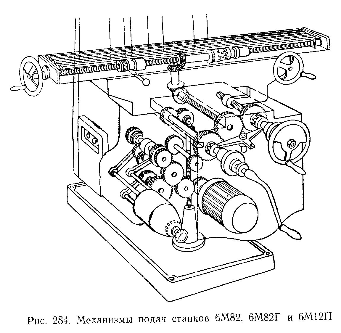 Коробка подач является самостоятельным узлом, монтируемым з левой стороны консоли. Она одинакова для всей гаммы верстатів, — 6М12П, 6М13П, 6М82, 6М82Г, 6М83, 6М83Г, 6М82Ш.