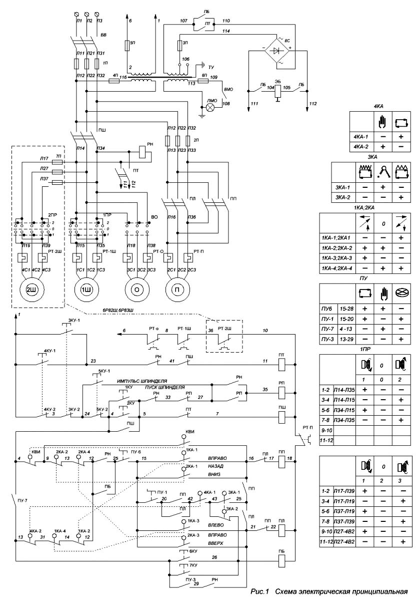 1. Електрична схема консольно-фрезерных верстатів серии 6Р. Скачать в увеличенном масштабе