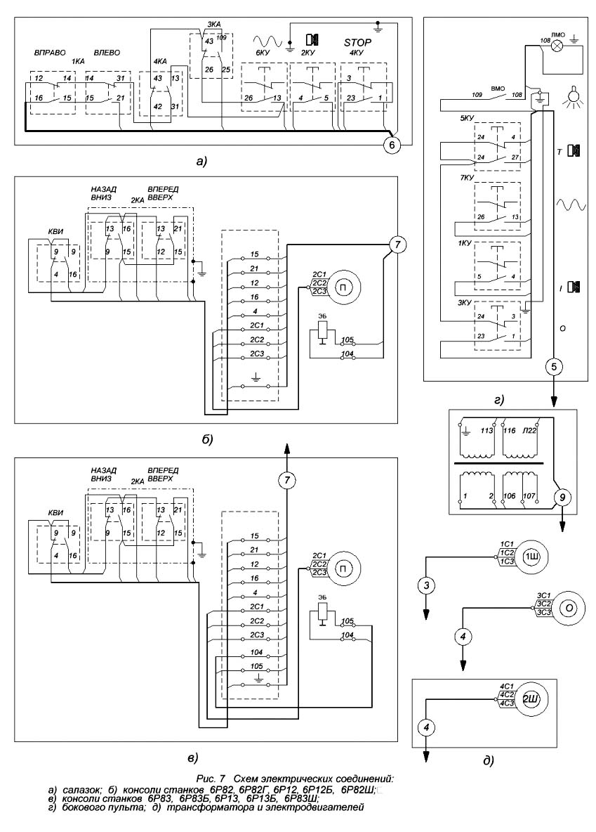6. Cхема електрических з'єднань консольно-фрезерных верстатів серии 6Р. Скачать в увеличенном масштабе