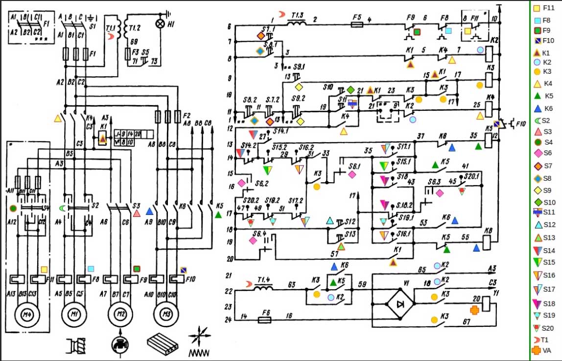 3. Схема електрична принципова фрезерных верстатів 6Р. Скачать в увеличенном масштабе