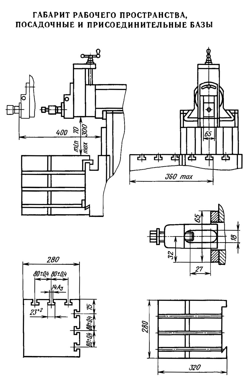 Габарит робочого простору. Посадочные і присоединительные базы поперечно-строгального верстата 7303