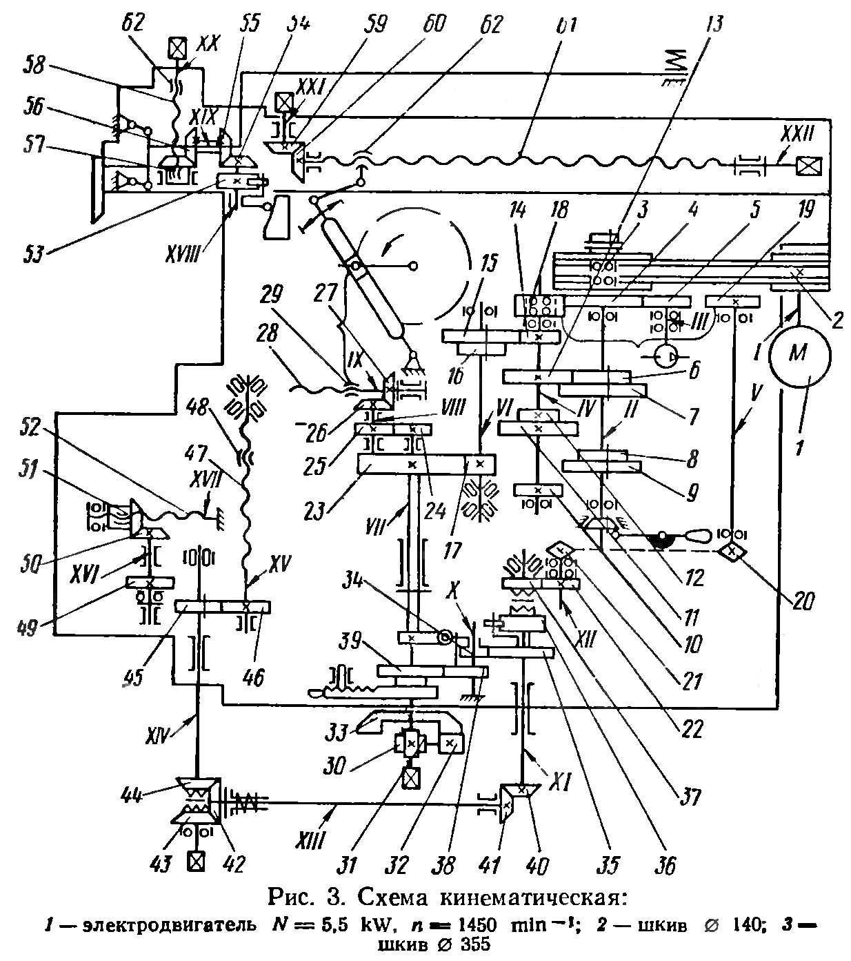 Механізми, размещенные в станине верстата, имеют принудительную централизованную смазку. Привід верстата — от отдельного електродвигуна, включаемого з кнопочной станції.