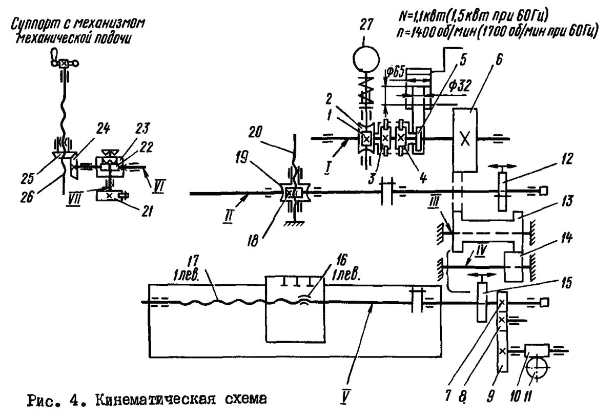 Механізм обеспечивает механическую подачу суппорта только вниз.