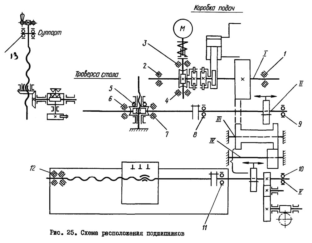 2. Схема розположення підшибників строгального верстата 7307Д. Дивитись у збільшеному масштабі