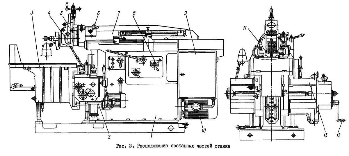 Розташування основних вузлів поперечно-строгального верстата 7307д