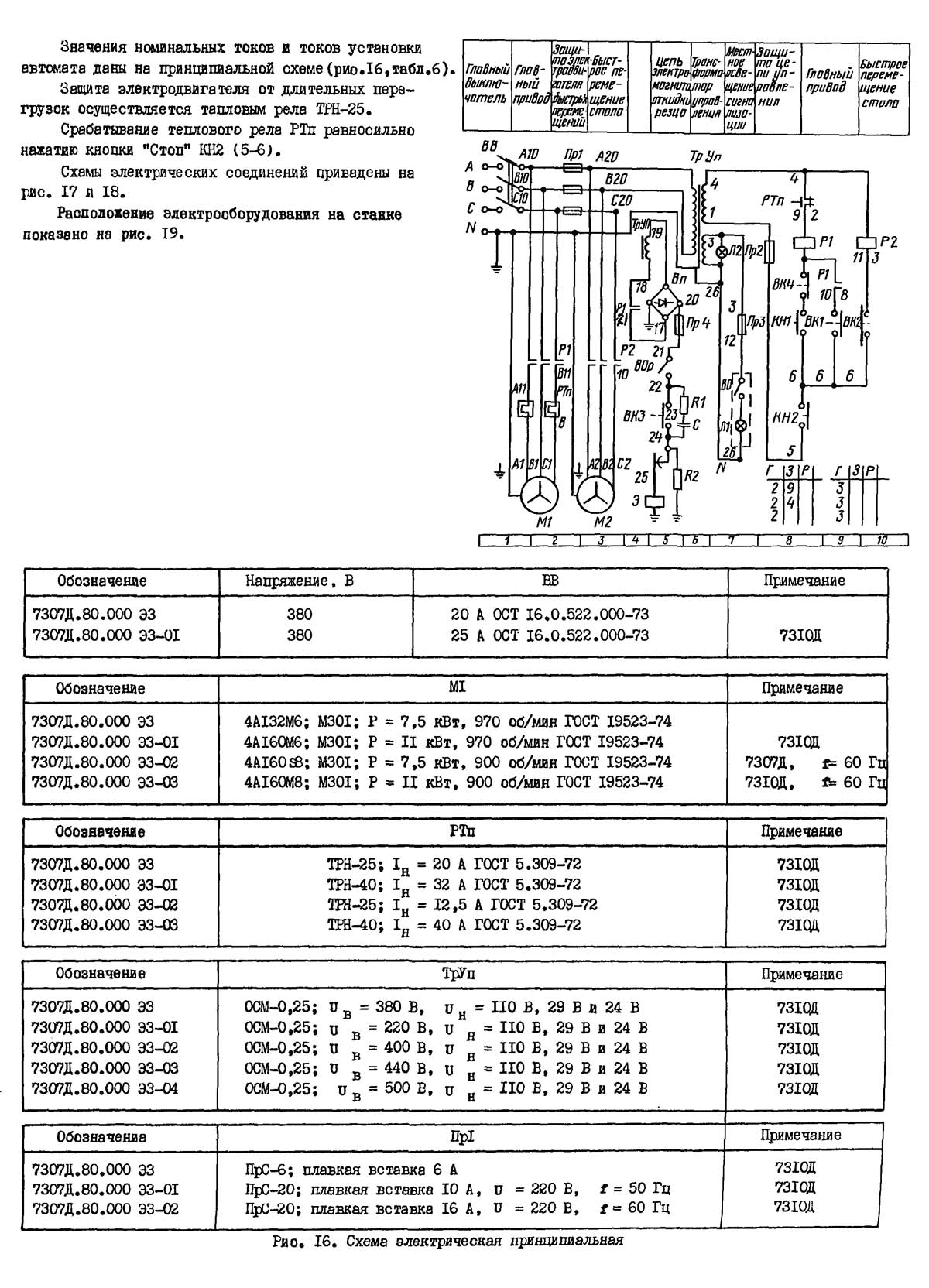 Схема Електричнастрогального верстата 7307Д. Дивитись у збільшеному масштабі
