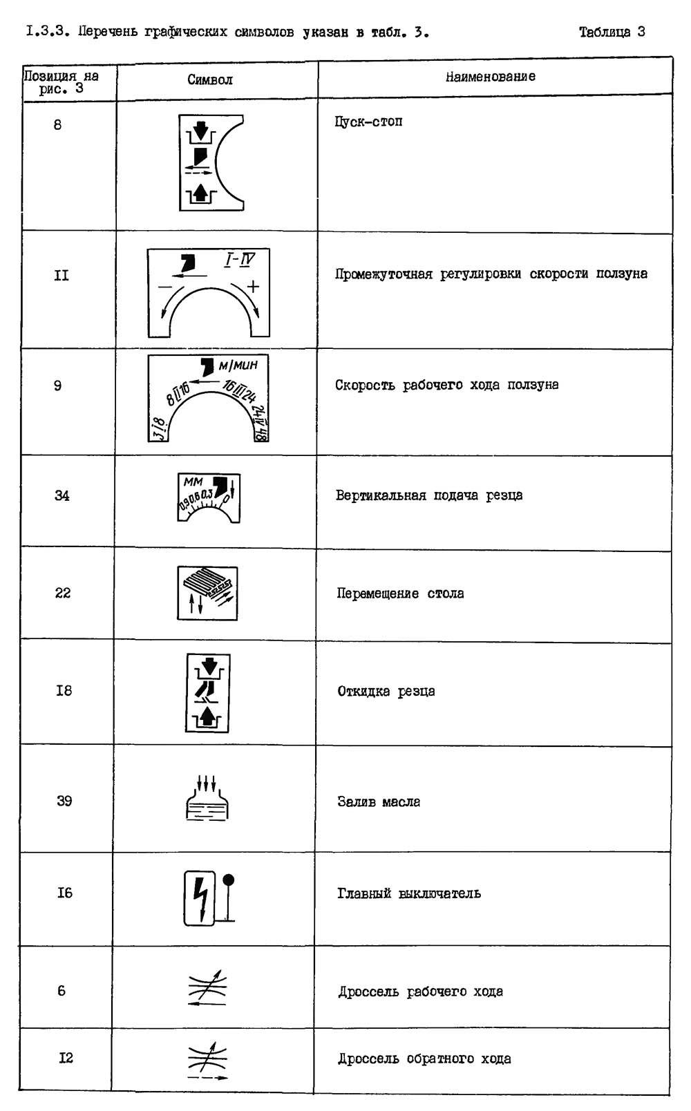 Список графических символів поперечно-строгального верстата 7307Д. Дивитись у збільшеному масштабі