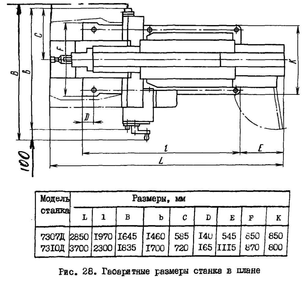 Габаритные розміри робочого простору поперечно-строгального верстата 7307Д