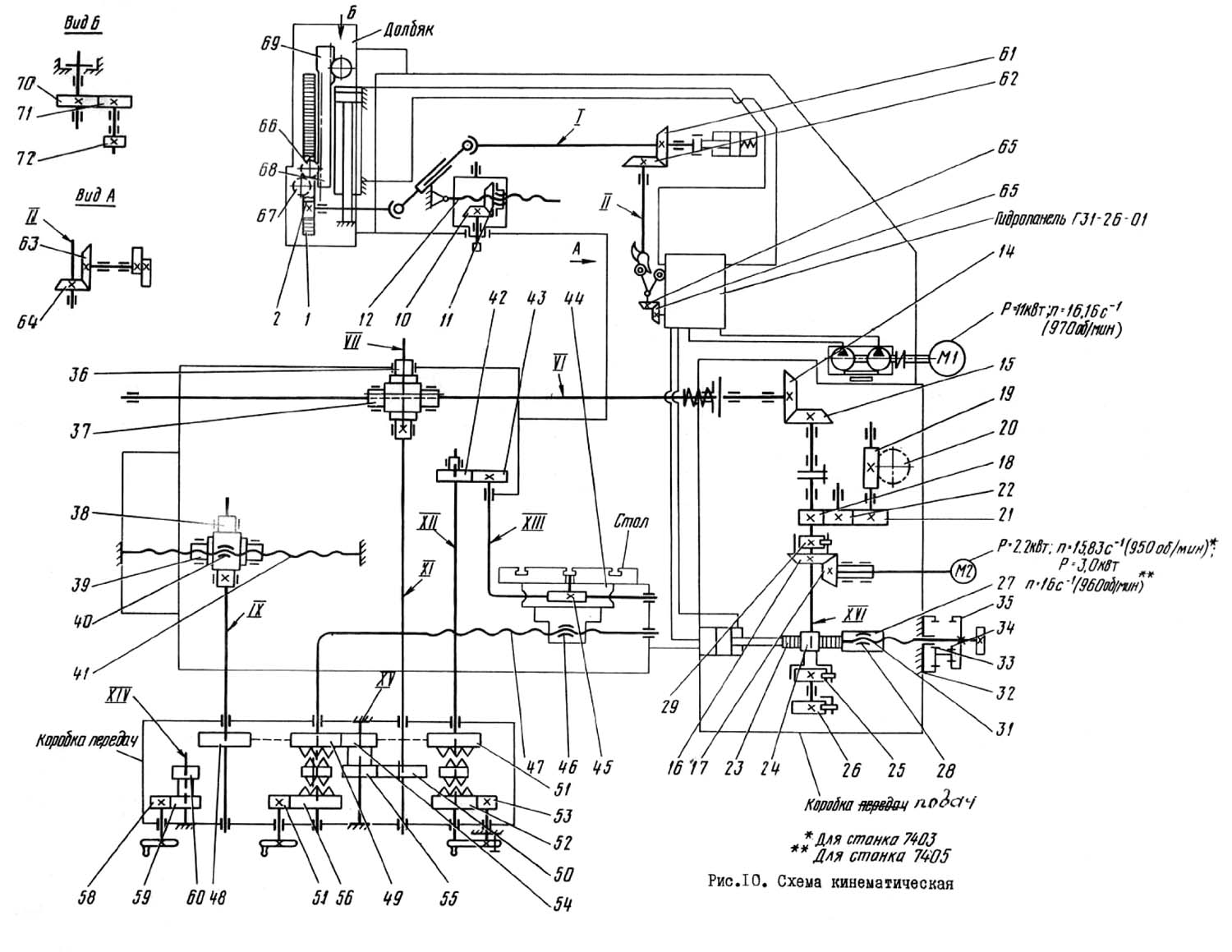 Схема кінематична долбежного верстата 7405. Дивитись у збільшеному масштабі