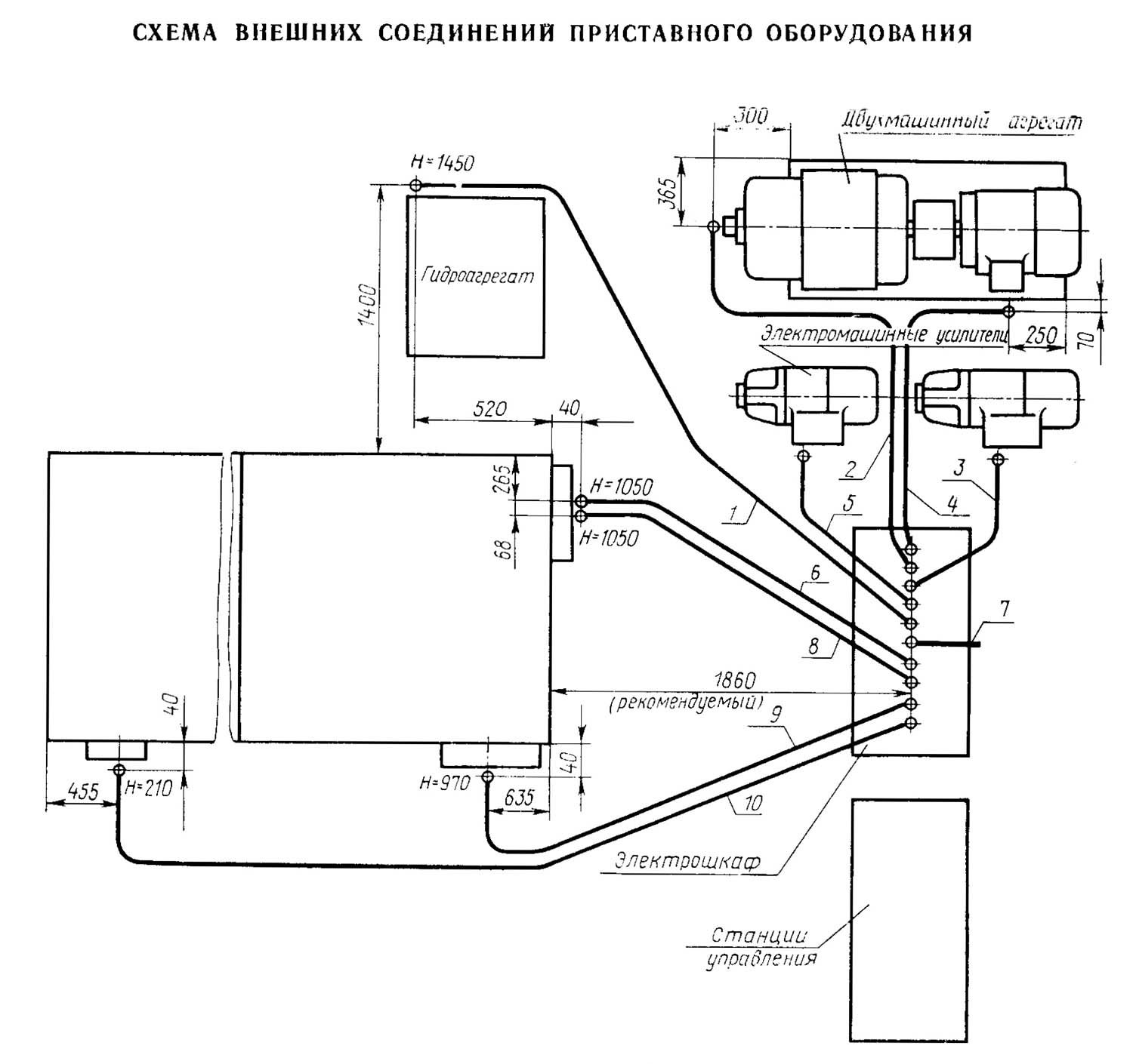 Схема внешних з'єднань долбежного верстата 7410. Дивитись у збільшеному масштабі