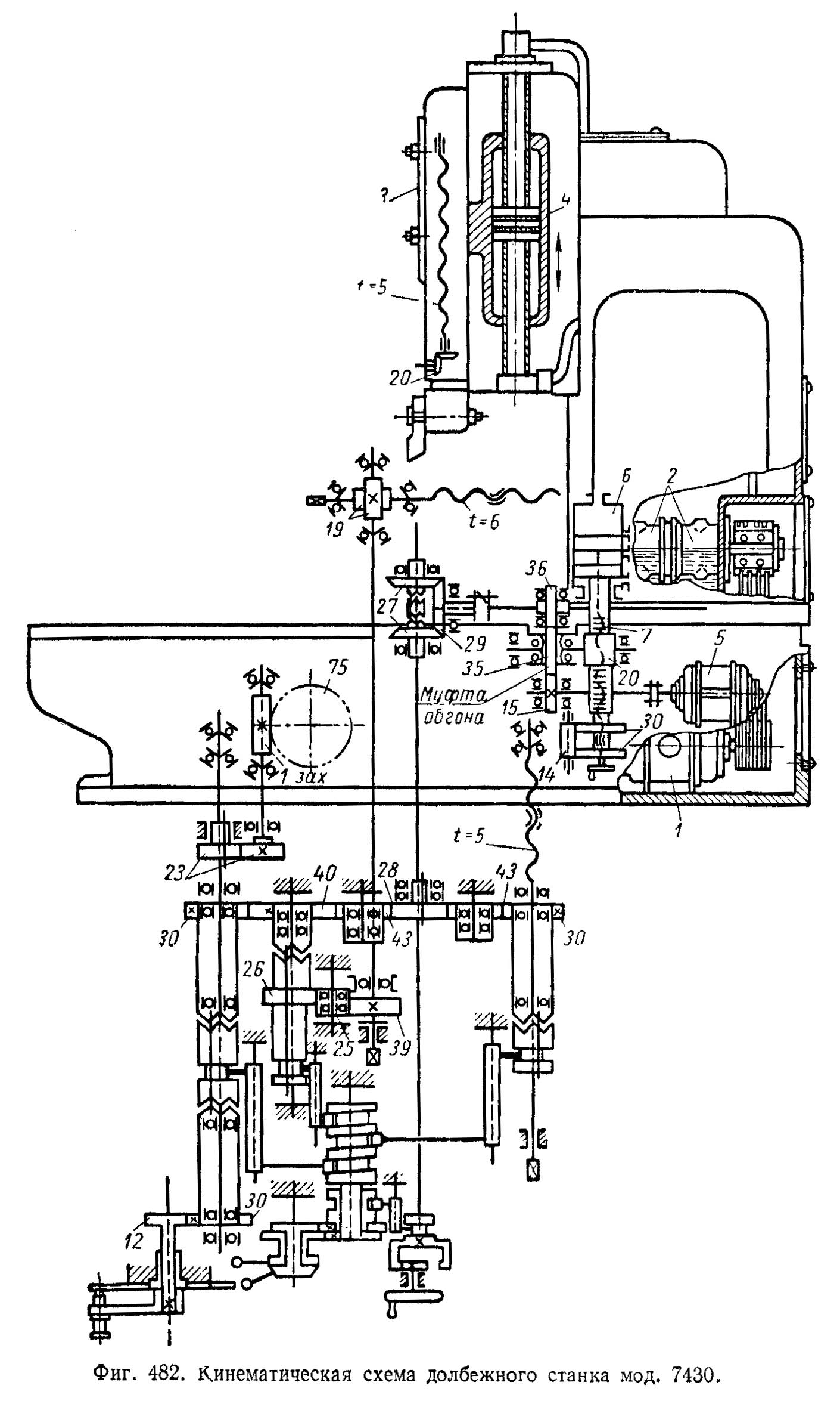 В отличие от ряда моделей верстатів з кулисным приводом долбяка і механическим приводом подачі в станке моделі 7430 возвратно-поступательное рух долбяку сообщается гідроприводом, а продольные, поперечные і круговые подачі стола осуществляются гідромеханическим пристрійм.
