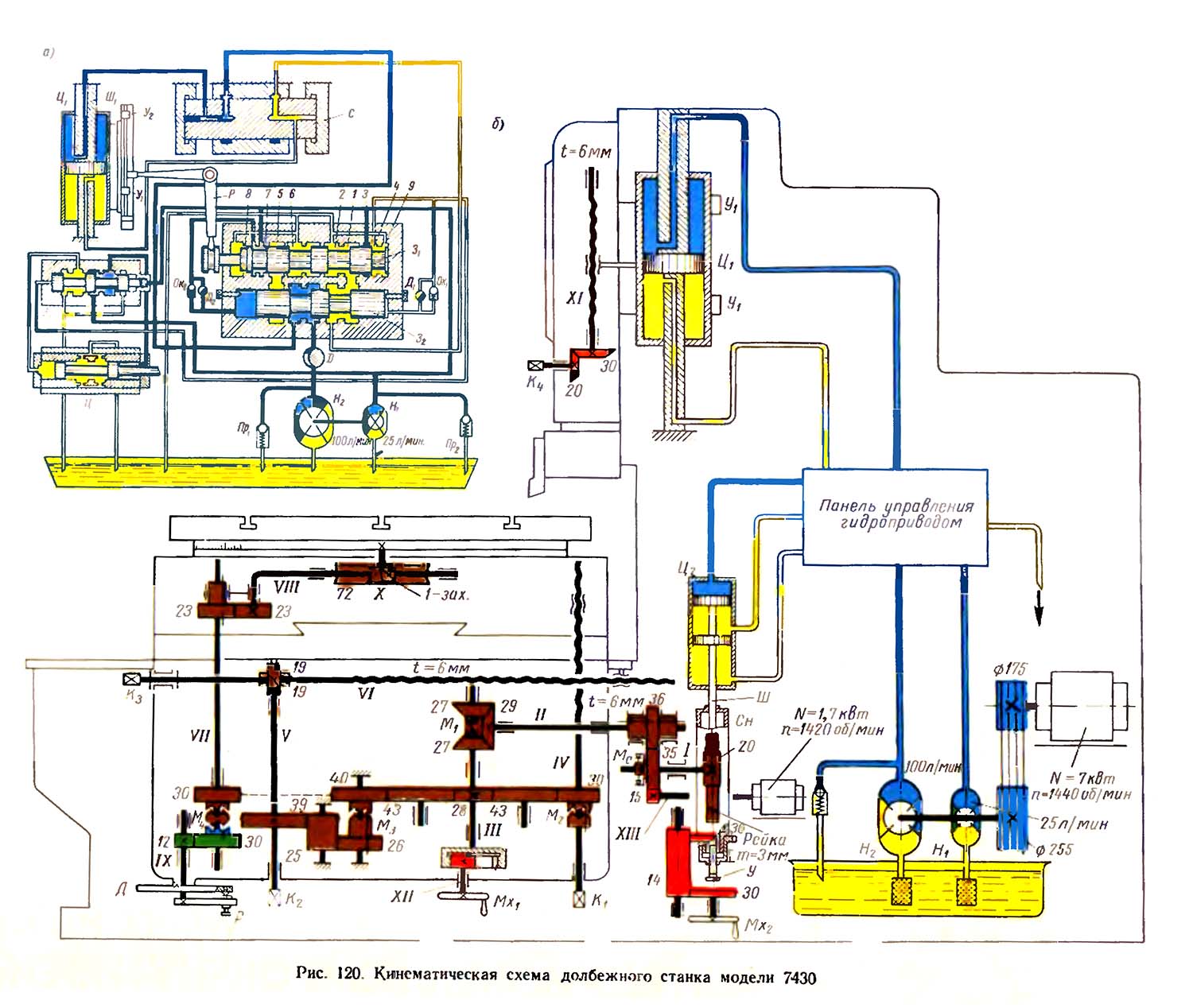 7430 Схема кінематична долбежного верстата з гідроприводом
