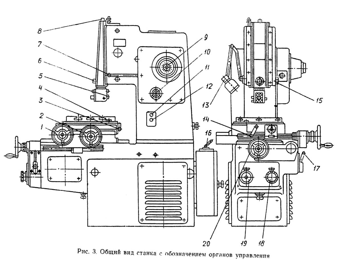 Розташування органів керування долбежным верстатом 7А412