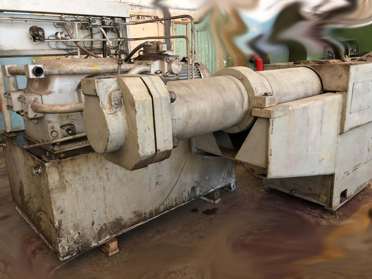 Рабочий цилиндр 35 получает масло от радиально-поршневого реверсивного насоса 1. При рабочем ходе напорной является магистраль 13—33—34, а сливной 36—37—14. Часть сливающегося масла питает насос; избыток сбрасывается через клапанную коробку 7 і напорный золотник 8. При обратном ходе масло от насоса поступает через трубопроводы 14 і 36. Масло, вытекающее из цилиндра, не може пройти через обратный клапан 33 і перетекает из правой в левую частини цилиндра через обратный клапан 37. Из бака масло забирается через обратный клапан 5 і клапанную коробку 7.
