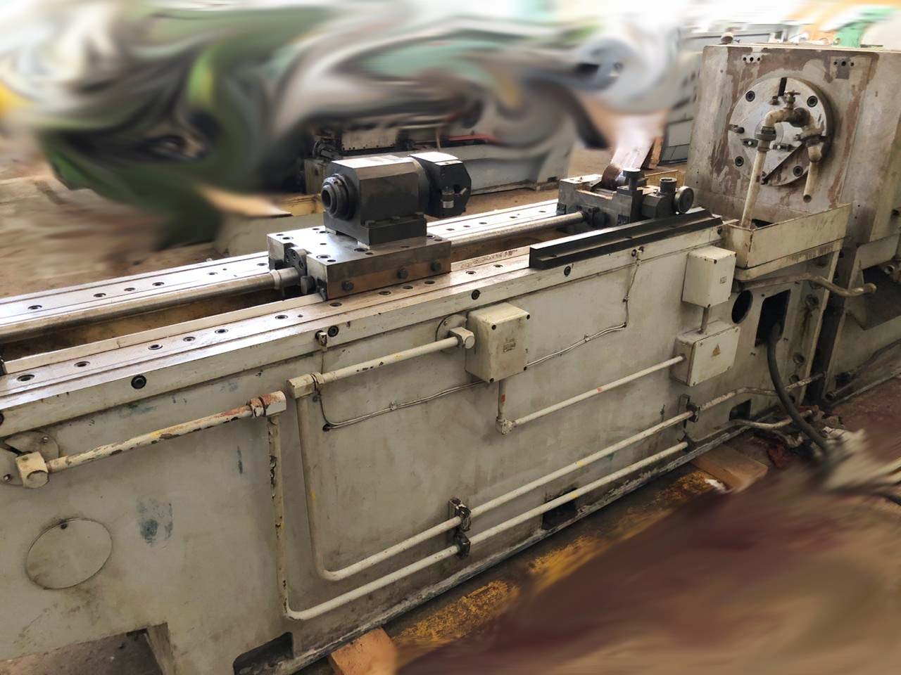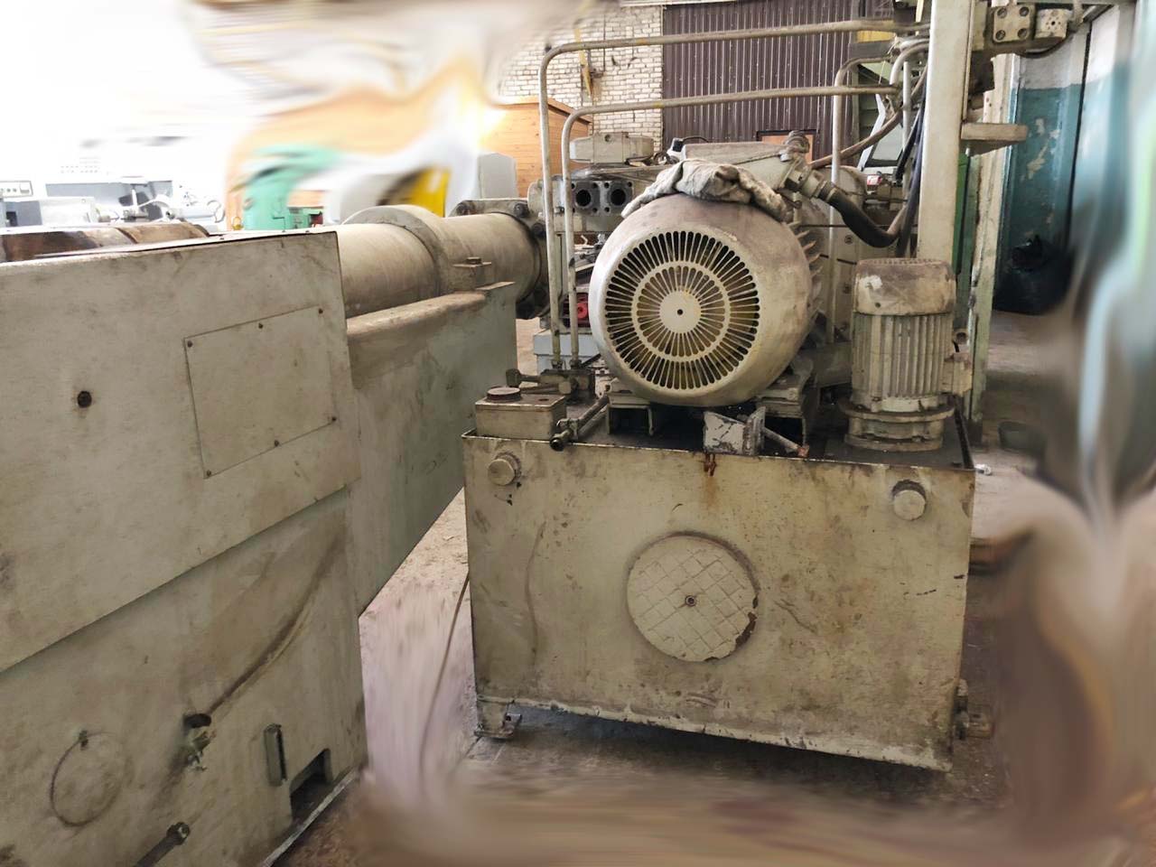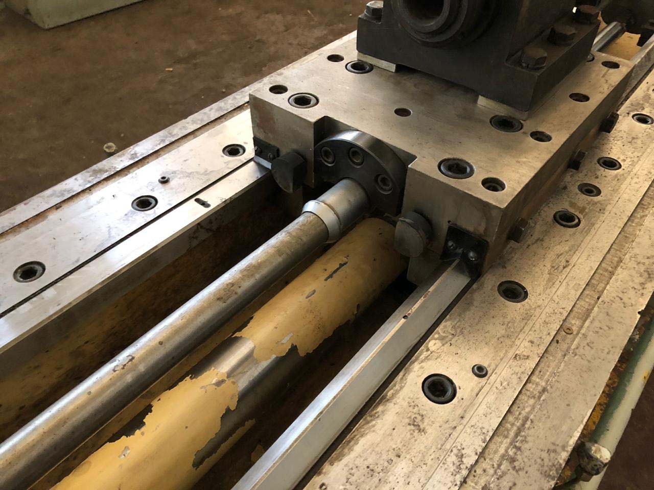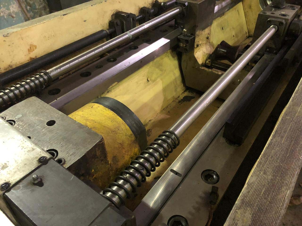В задньої частини станины на постельные планки устанавливается рабочий цилиндр 3. Необходимая жесткость крепления цилиндра обеспечивается призонными гвинтами 4 і клиньями 5, установленными между хомутом передньої крышки цилиндра і неподвижными упорами 6, закрепленными к постельным планкам. В передньої частини станины имеется склиз, по которому стружка з охлаждающей жидкостью выводится наружу в приемный ящик для стружки.