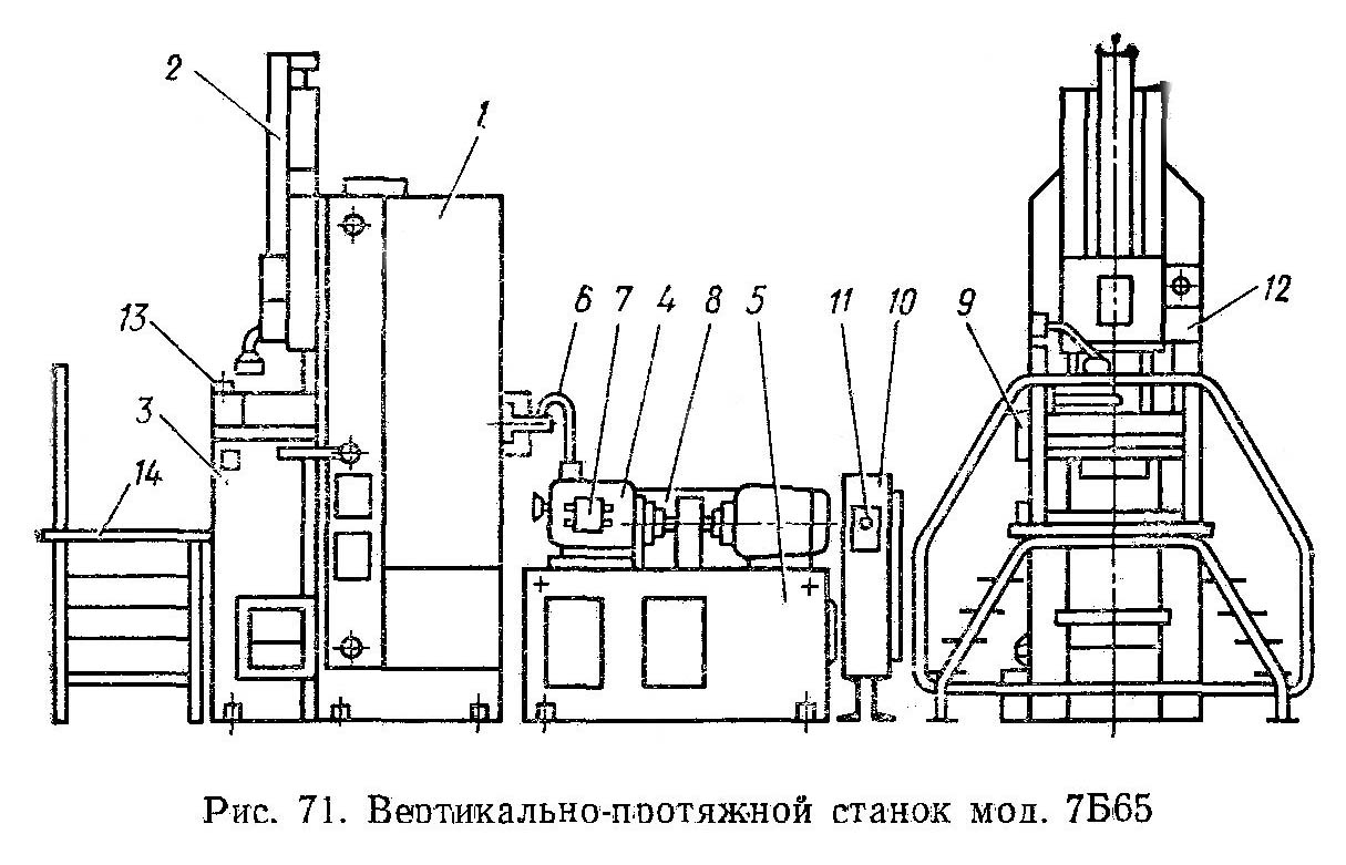 Кінематична схема вертикально-протяжного верстата 7Б65