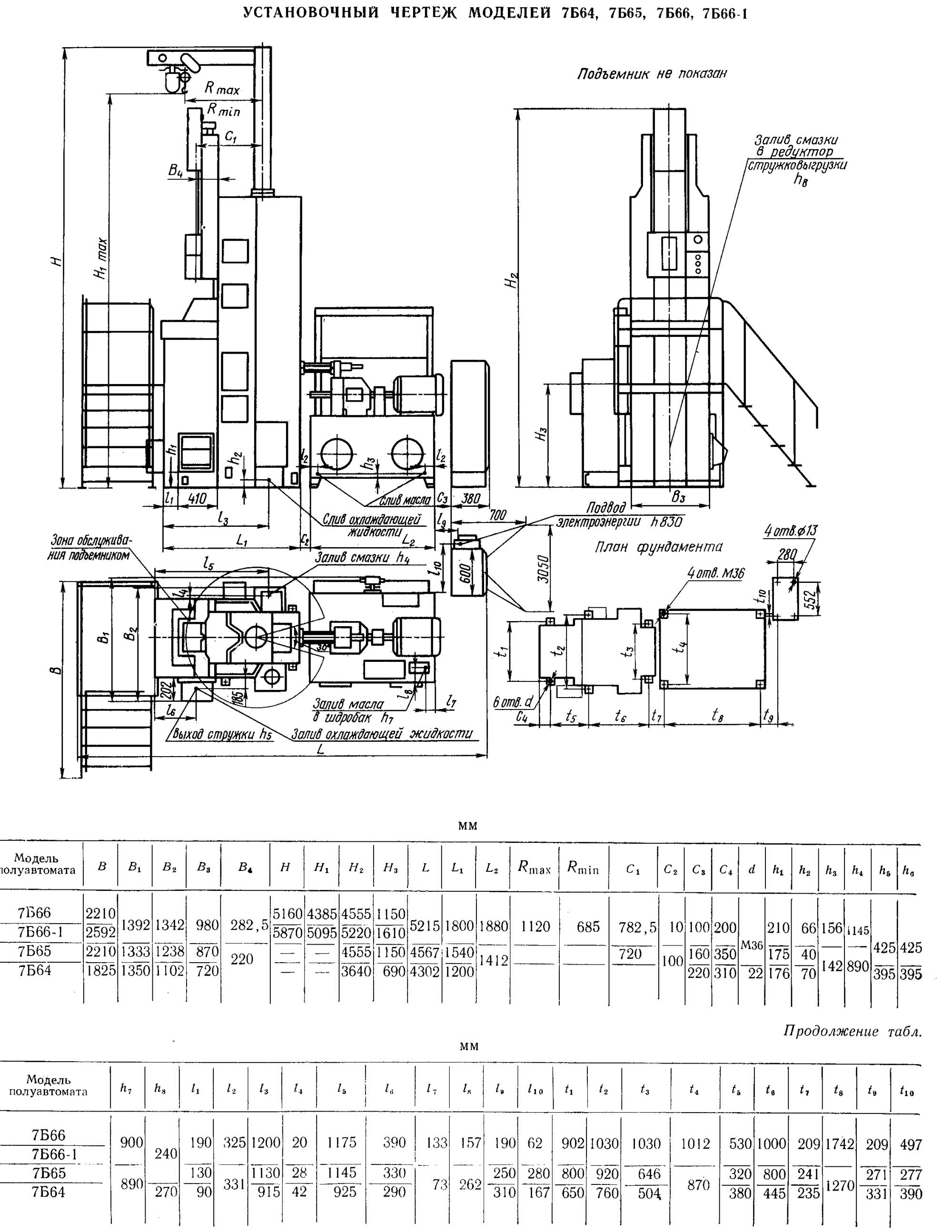 Габарит робочого простору верикально-протяжного верстата 7Б65
