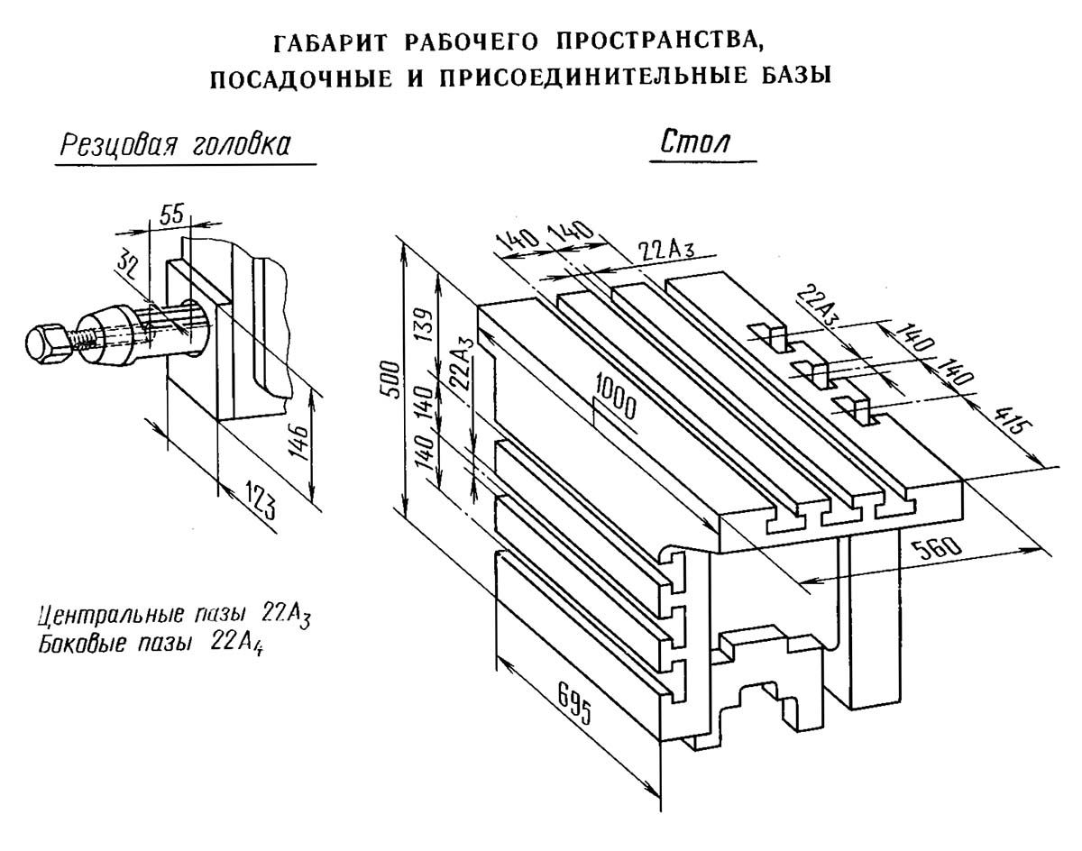 Габарит робочого простору. Посадочные і присоединительные базы поперечно-строгального верстата 7Д37
