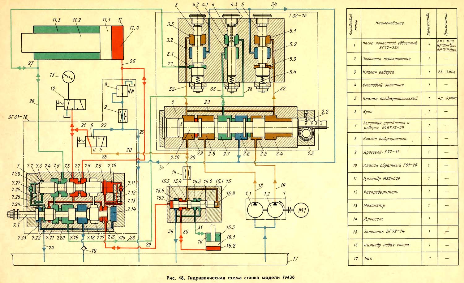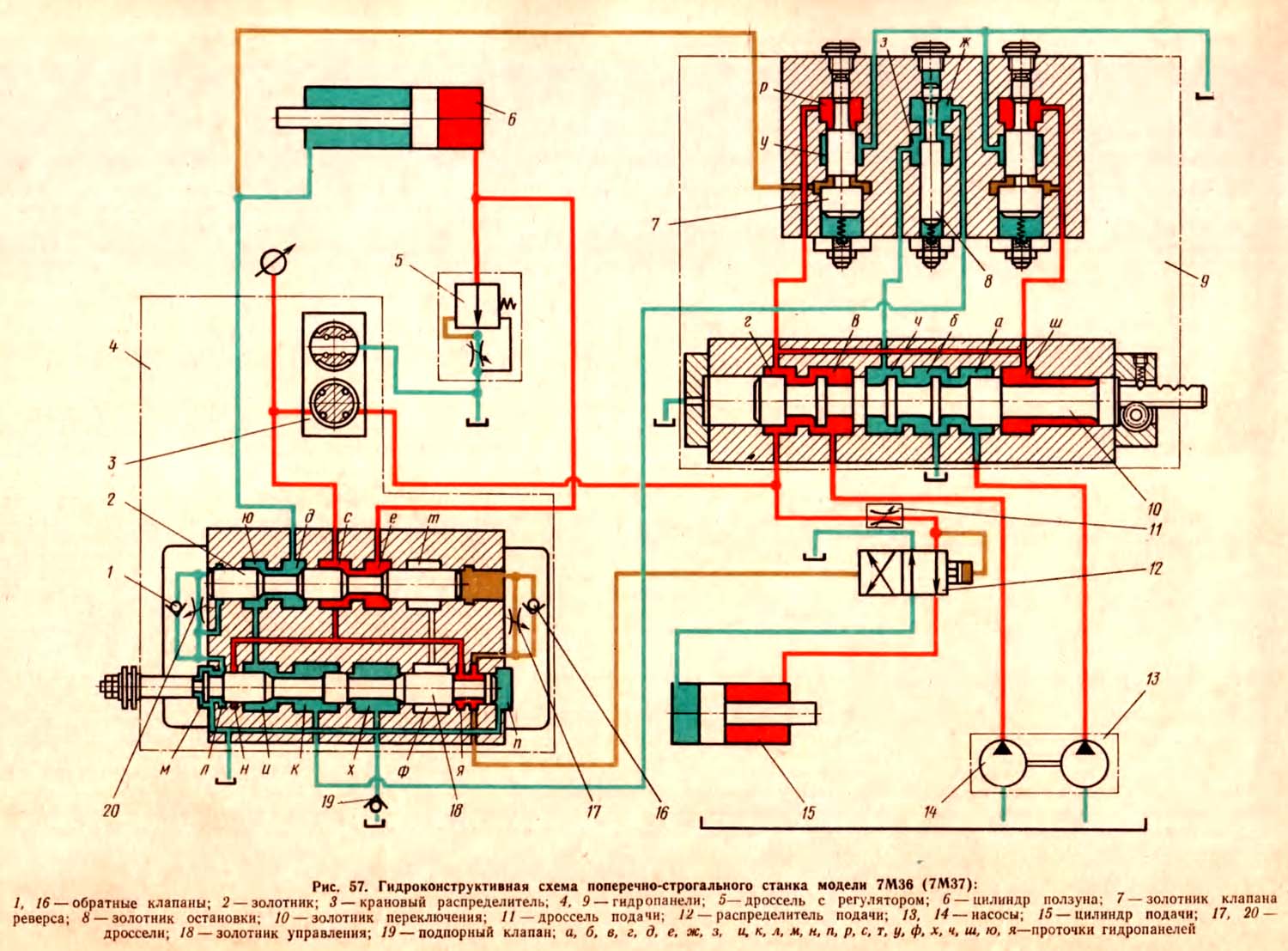 Возможные неисправности в гідроприводе верстата 7М36 (7М37) (рис. 58)