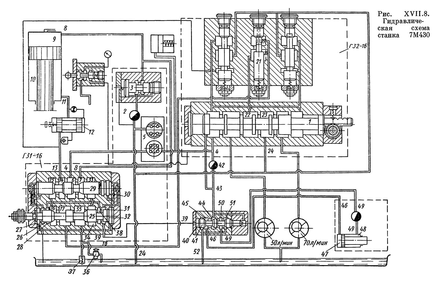 7М430 Гідравлічна схема долбежного верстата