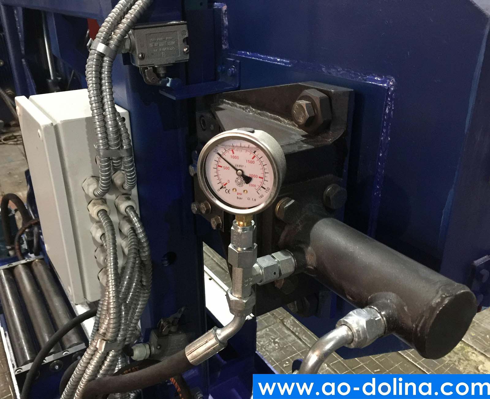 Заводом изготовителем установлено допустимое значение натяжения пильного полотна 100-120 bar і определяется по манометру гідроцилиндра натяжения полотна.