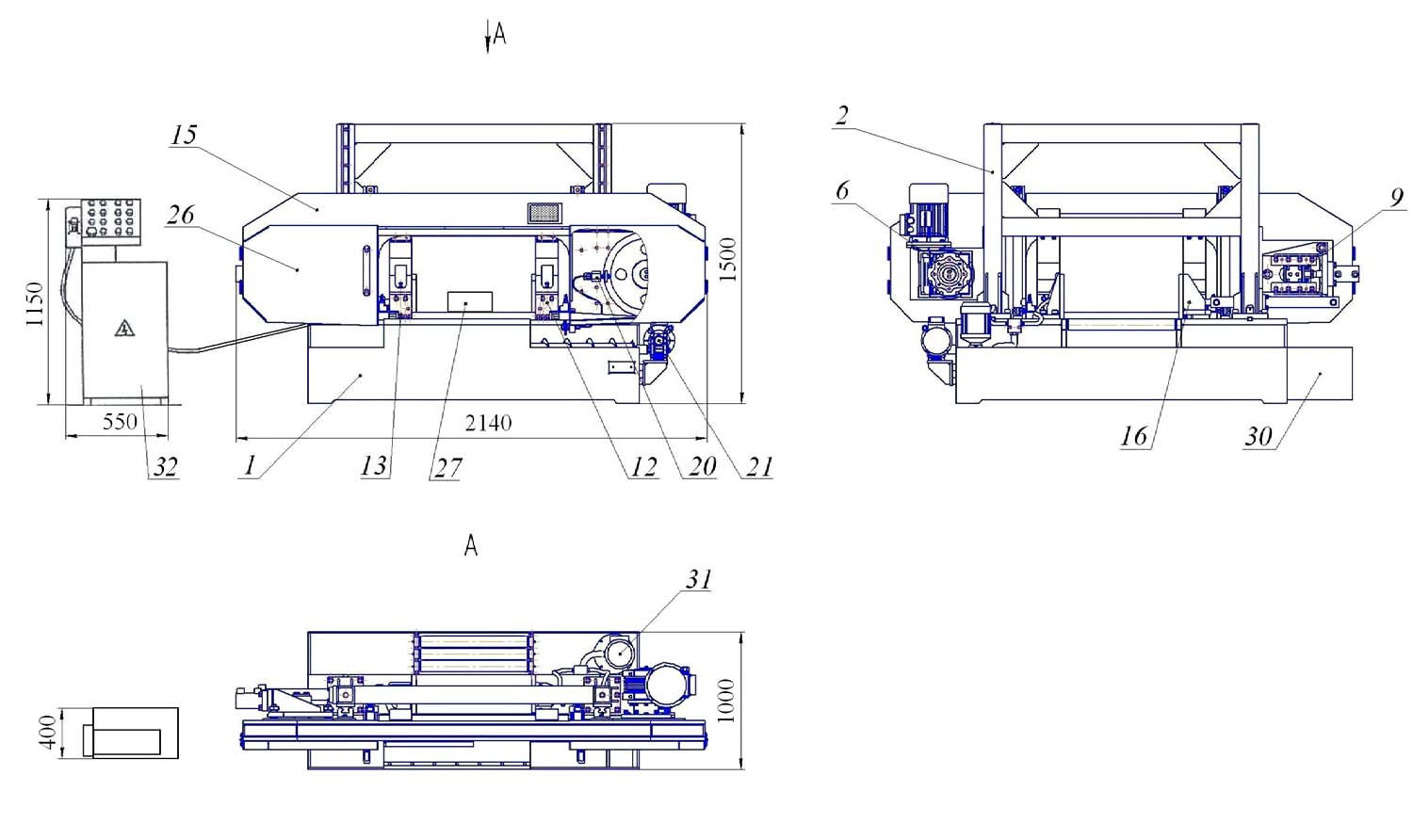 Розташування основних вузлів ленточнопильного верстата 8535. Дивитись у збільшеному масштабі
