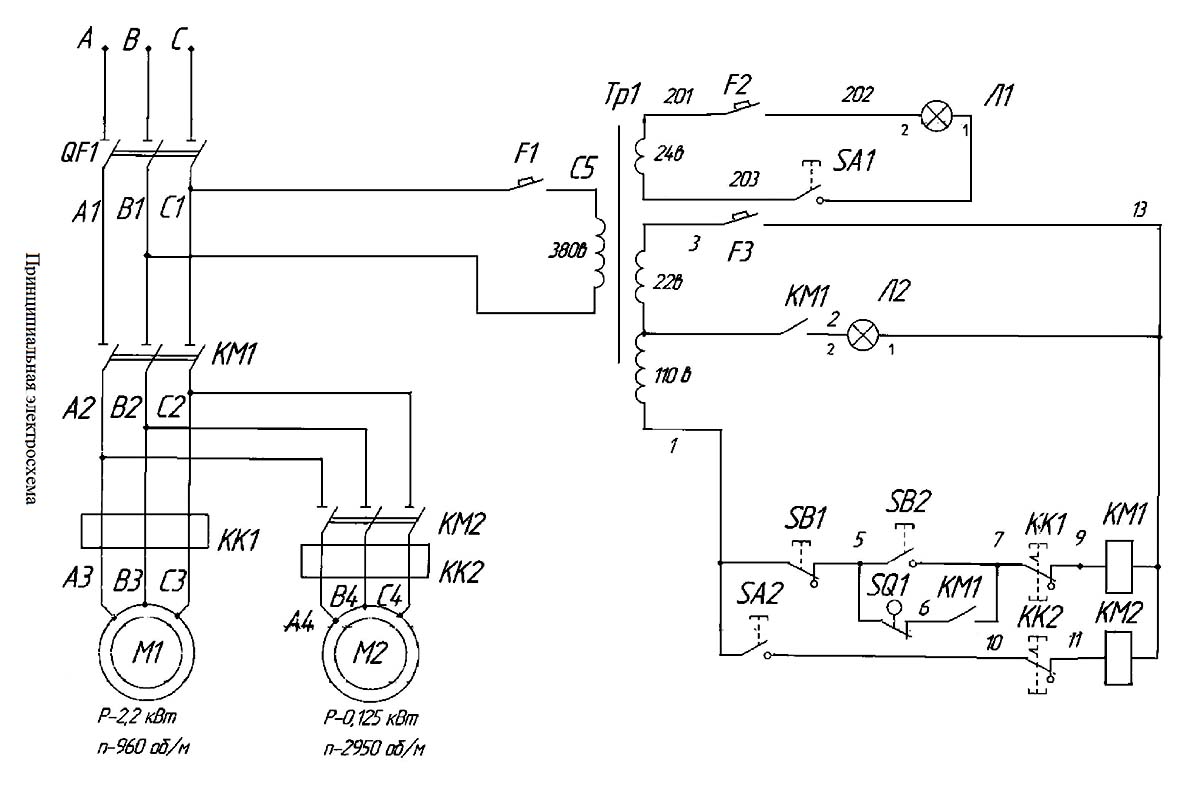 Електрична схема отрезного ножовочного верстата 8725. Дивитись у збільшеному масштабі