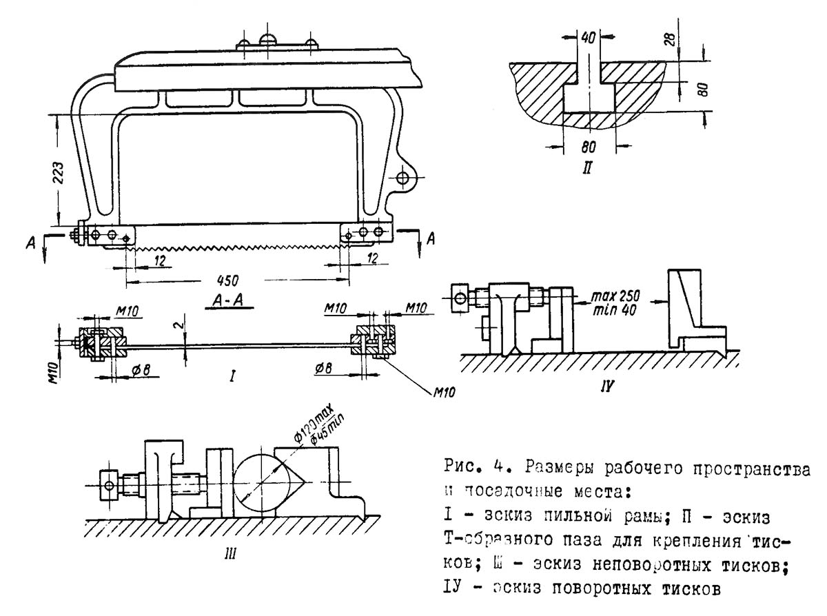 Габаритные розміри робочого простору ножовочного верстата 872М