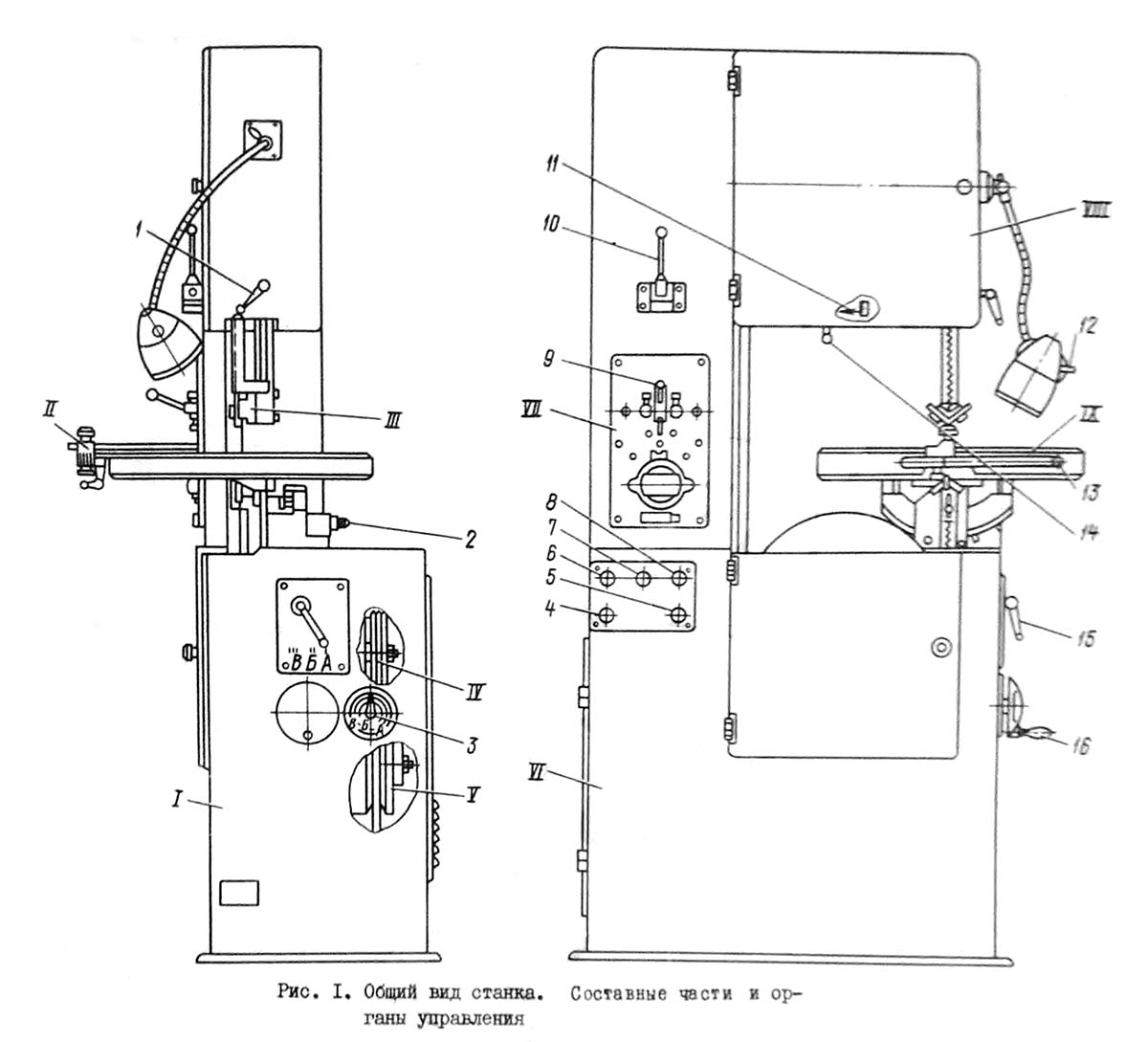 Ленточнопильный верстат моделі 8A531 состоит из следующих складових частин (см. рис. I):