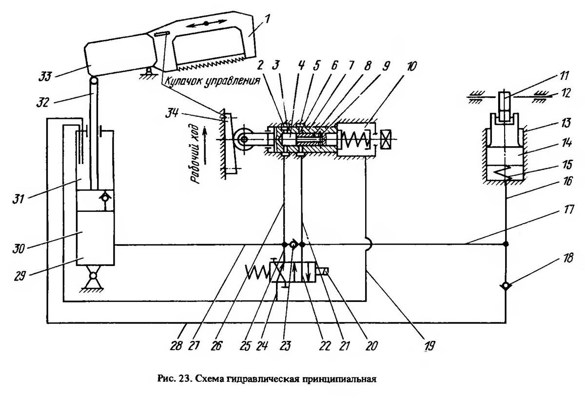 Схема гідравлічна автомата ножовочного отрезного 8А725