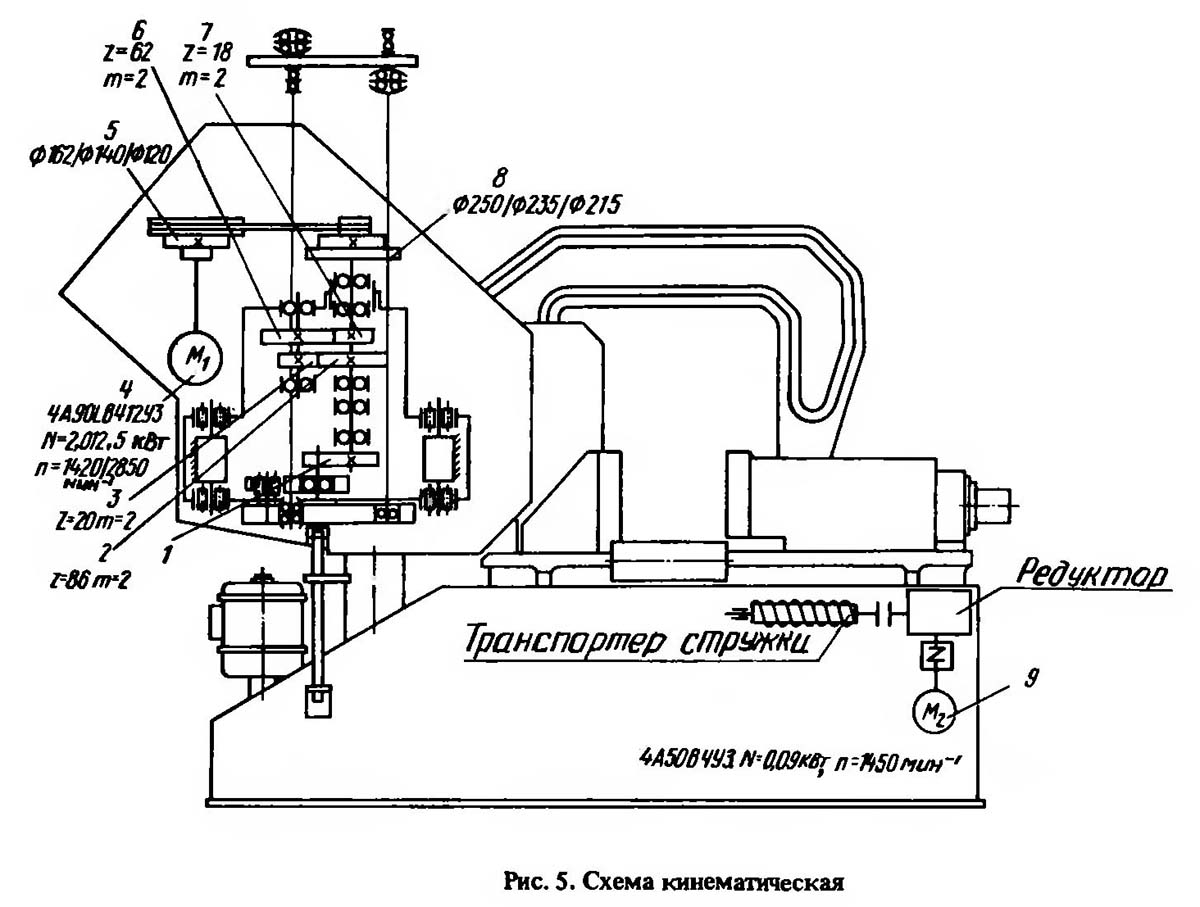 Автомат имеет наступні кинематические ланцюги: ланцюг головного руху; ланцюг транспортера стружки.