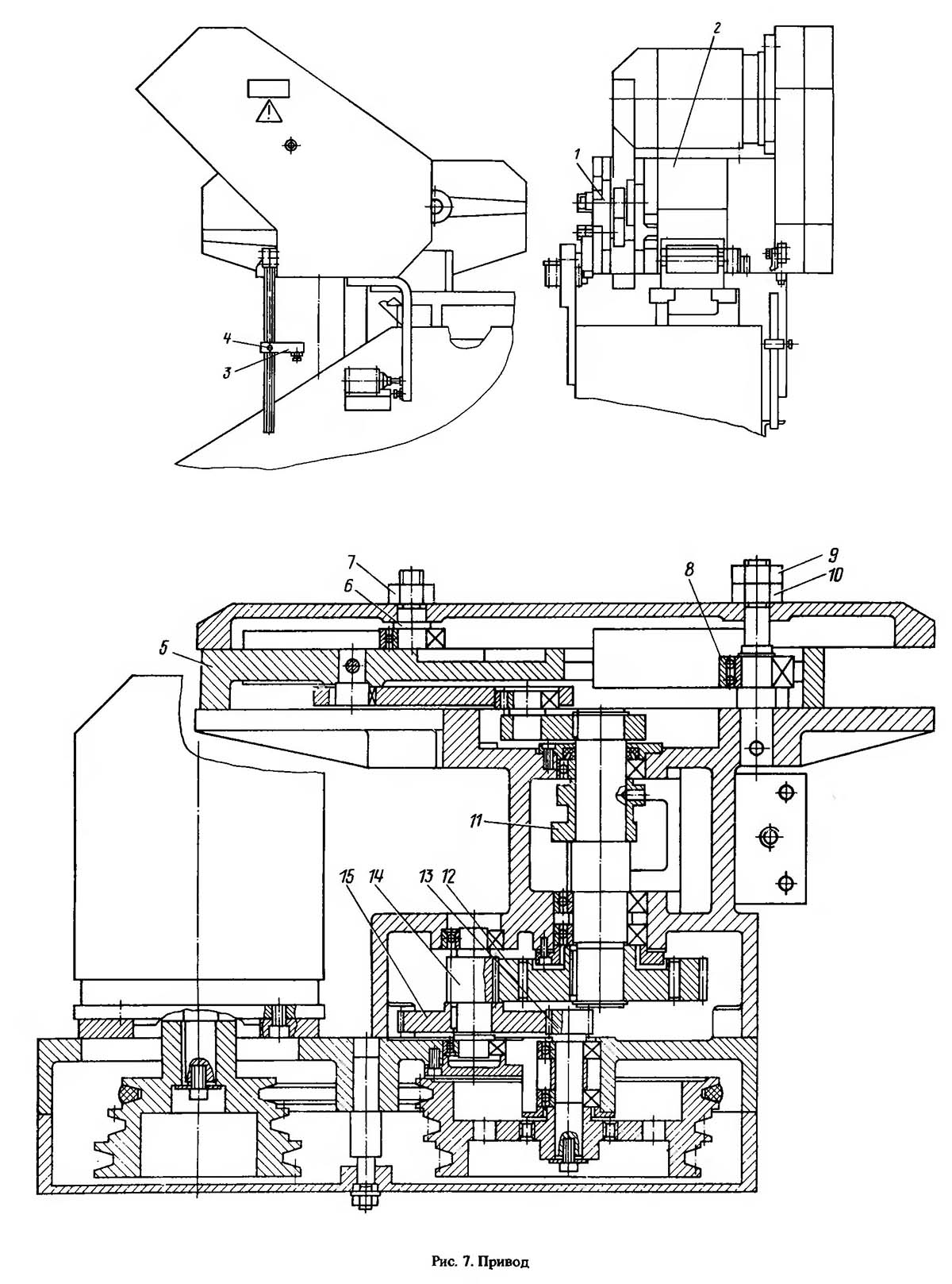 На выходном валу установлен кулачок 11, приводящий в рух плунжер насоса гідропривода.