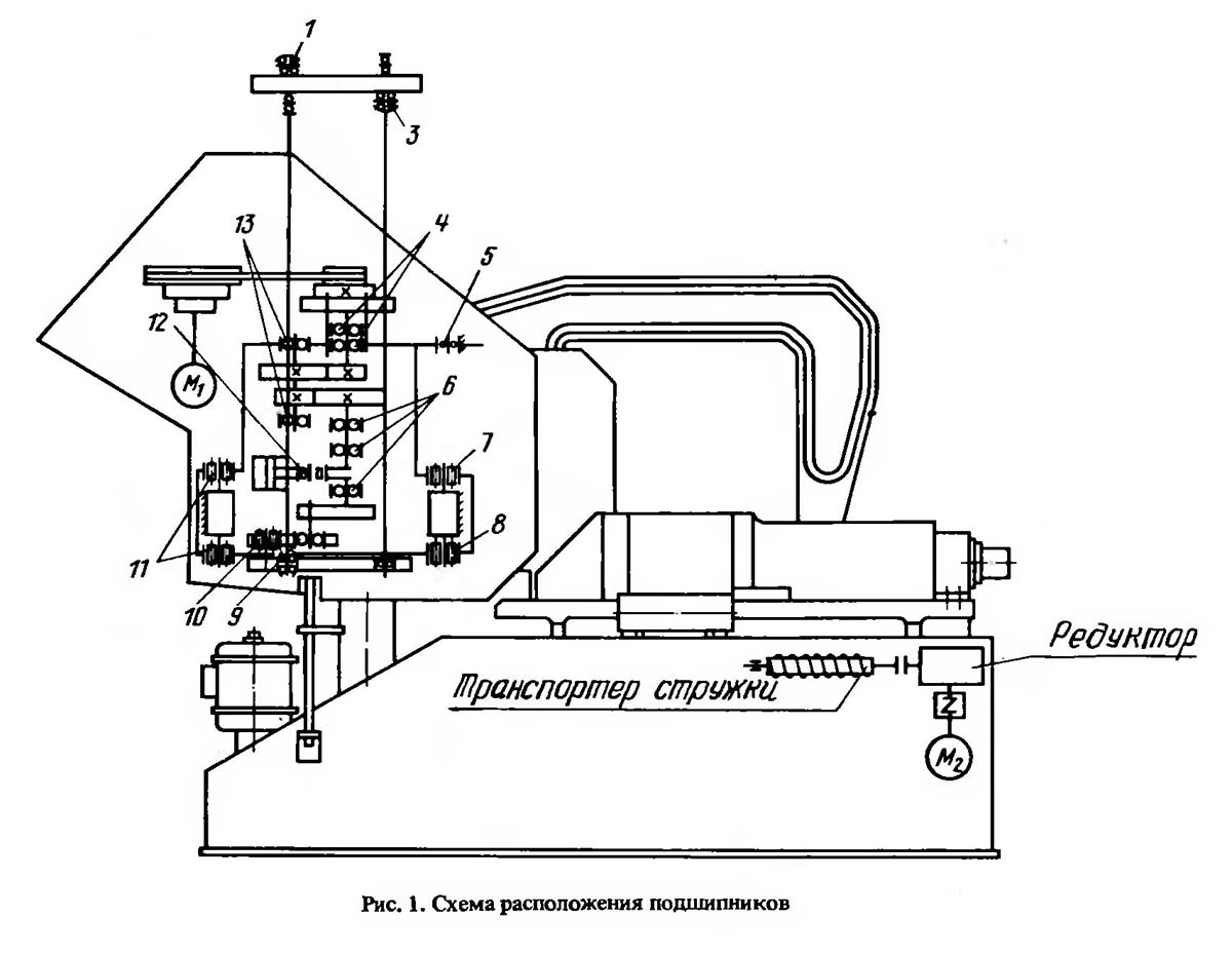 Схема установки підшибників механической ножовки 8А725. Дивитись у збільшеному масштабі