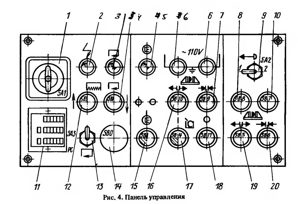 Список органів керування верстатом для резки металла 8А725