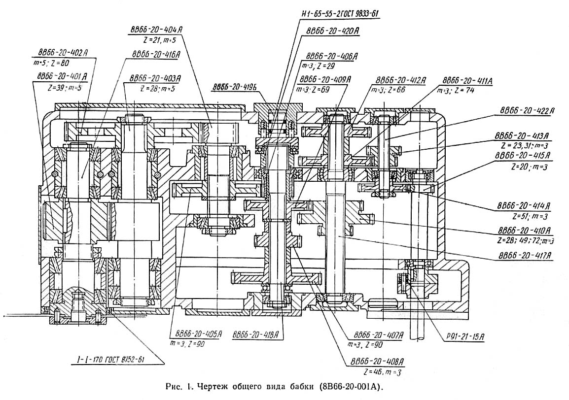 8В66 Кінематична схема отрезного верстата